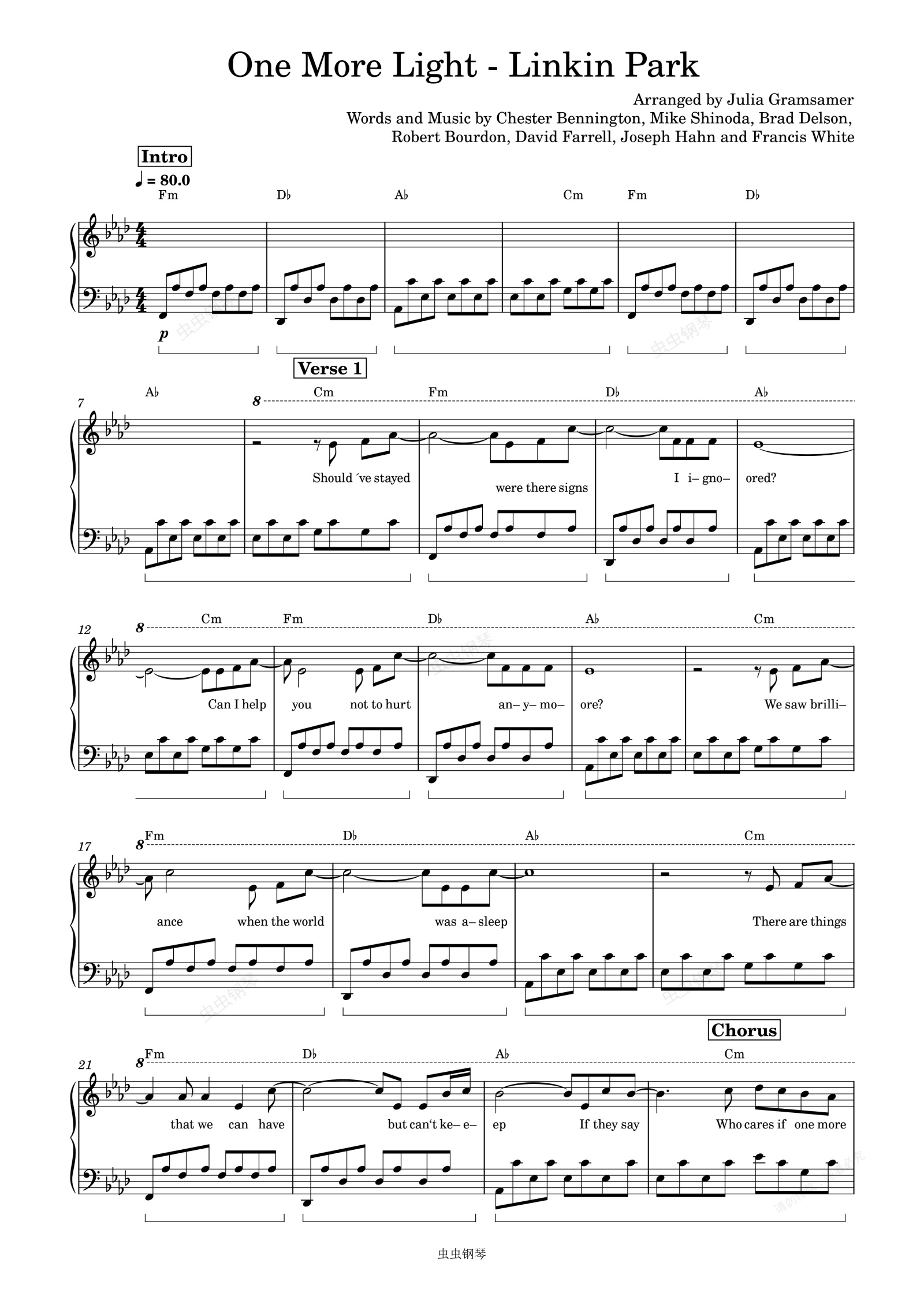 钢琴谱:One More Light-Linkin Park