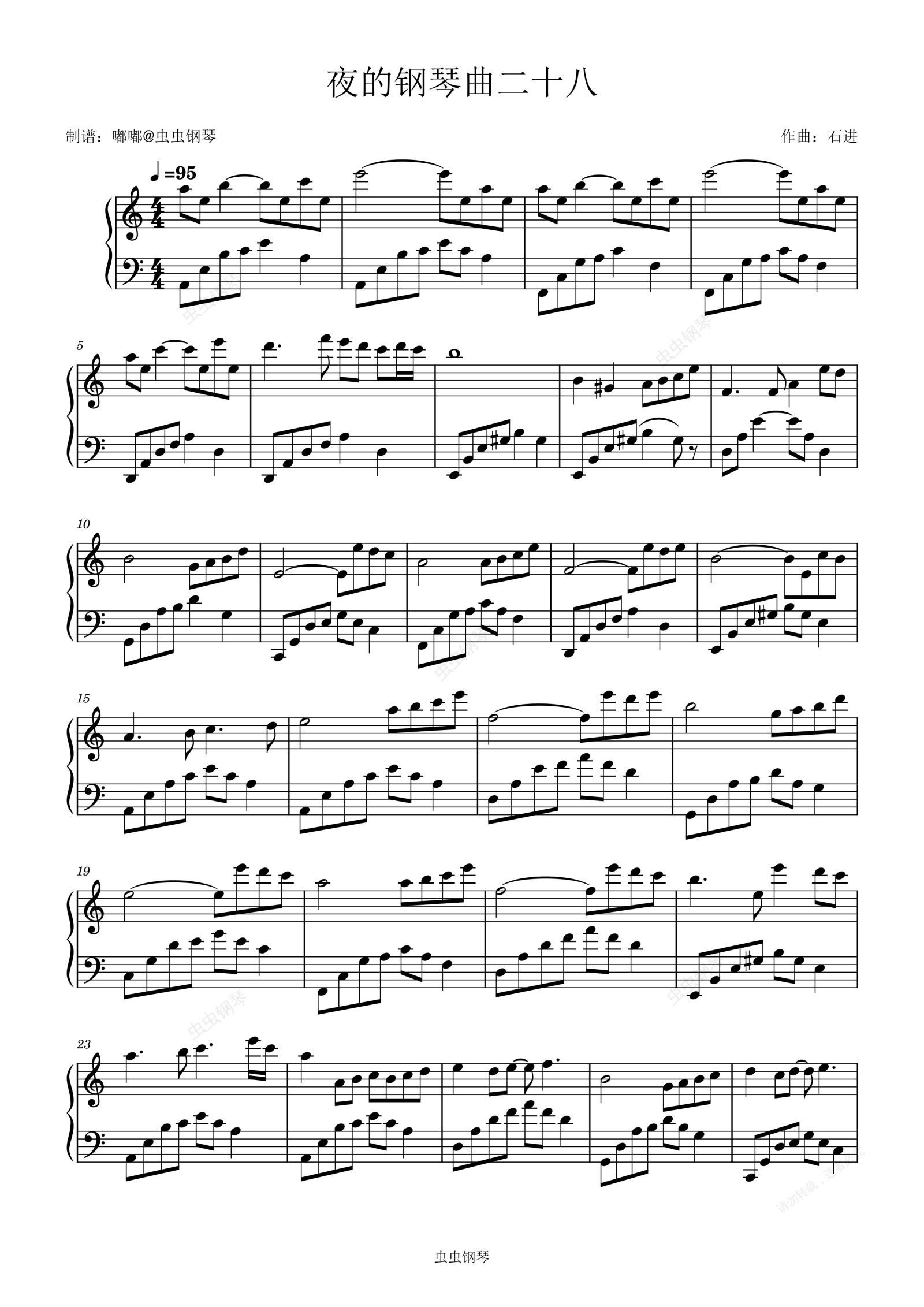 钢琴谱:夜的钢琴曲二十八(C调简化版)