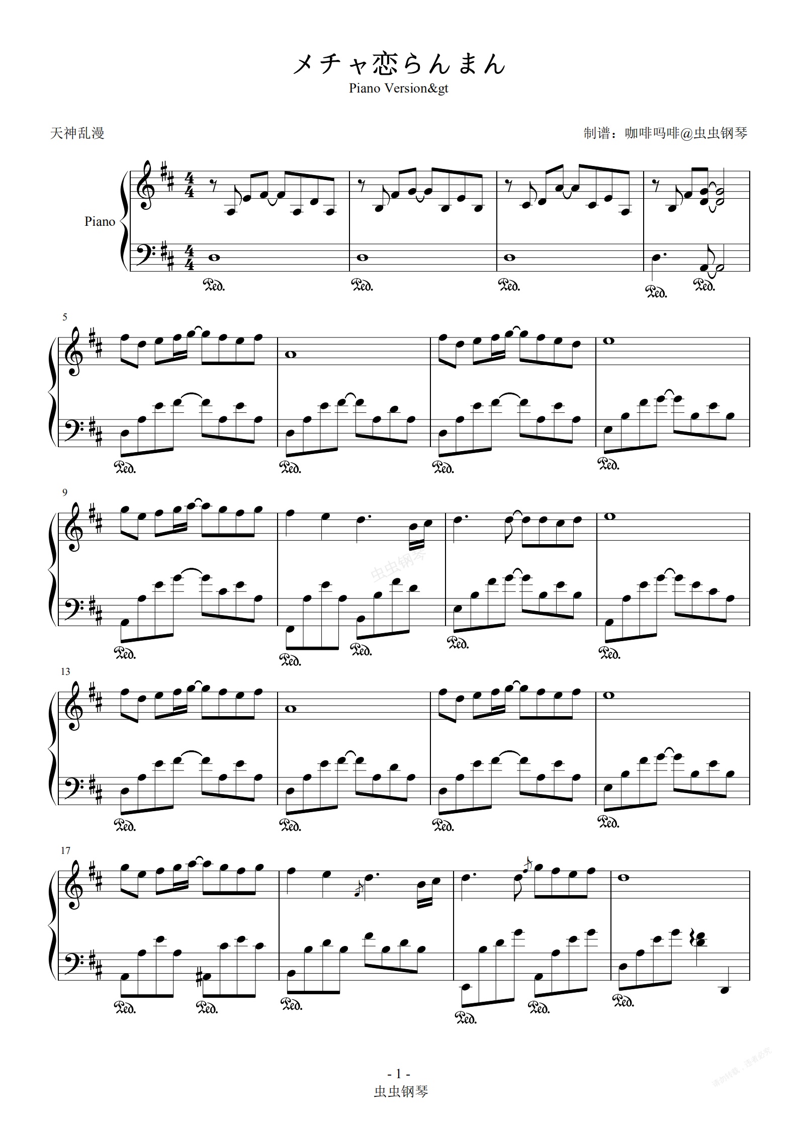 钢琴谱:メチャ恋らんまん-天神乱漫 钢琴谱