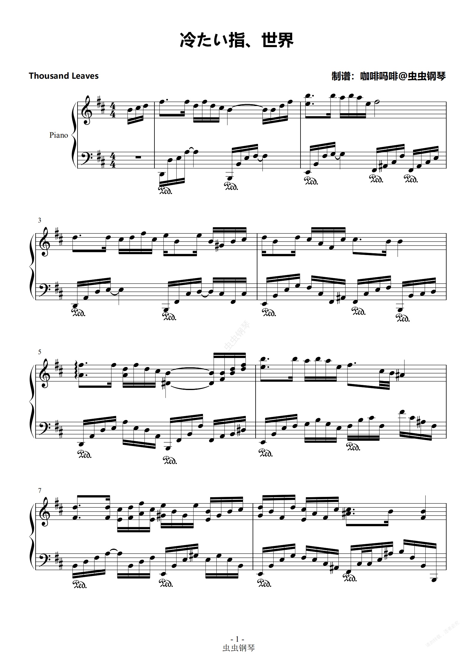 钢琴谱:冷たい指、世界-Thousand Leaves钢琴谱
