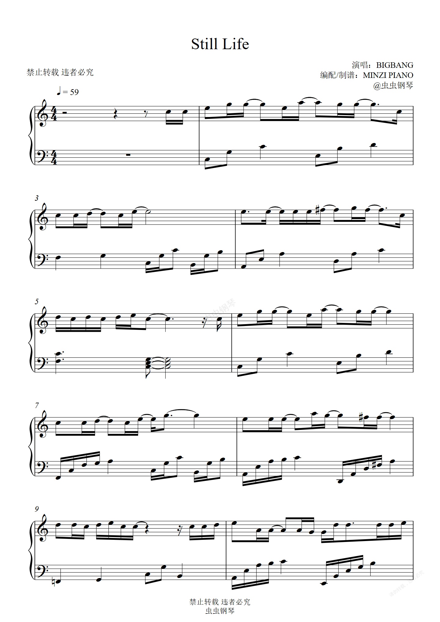 钢琴谱:BIGBANG回归新曲《Still Life》C调