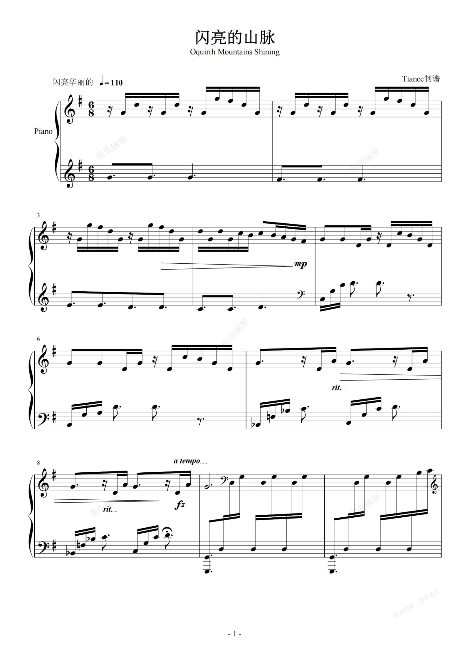 钢琴谱:《闪亮的山脉(Oquirrh Mountains Shining)》超赞纯钢琴,299难度