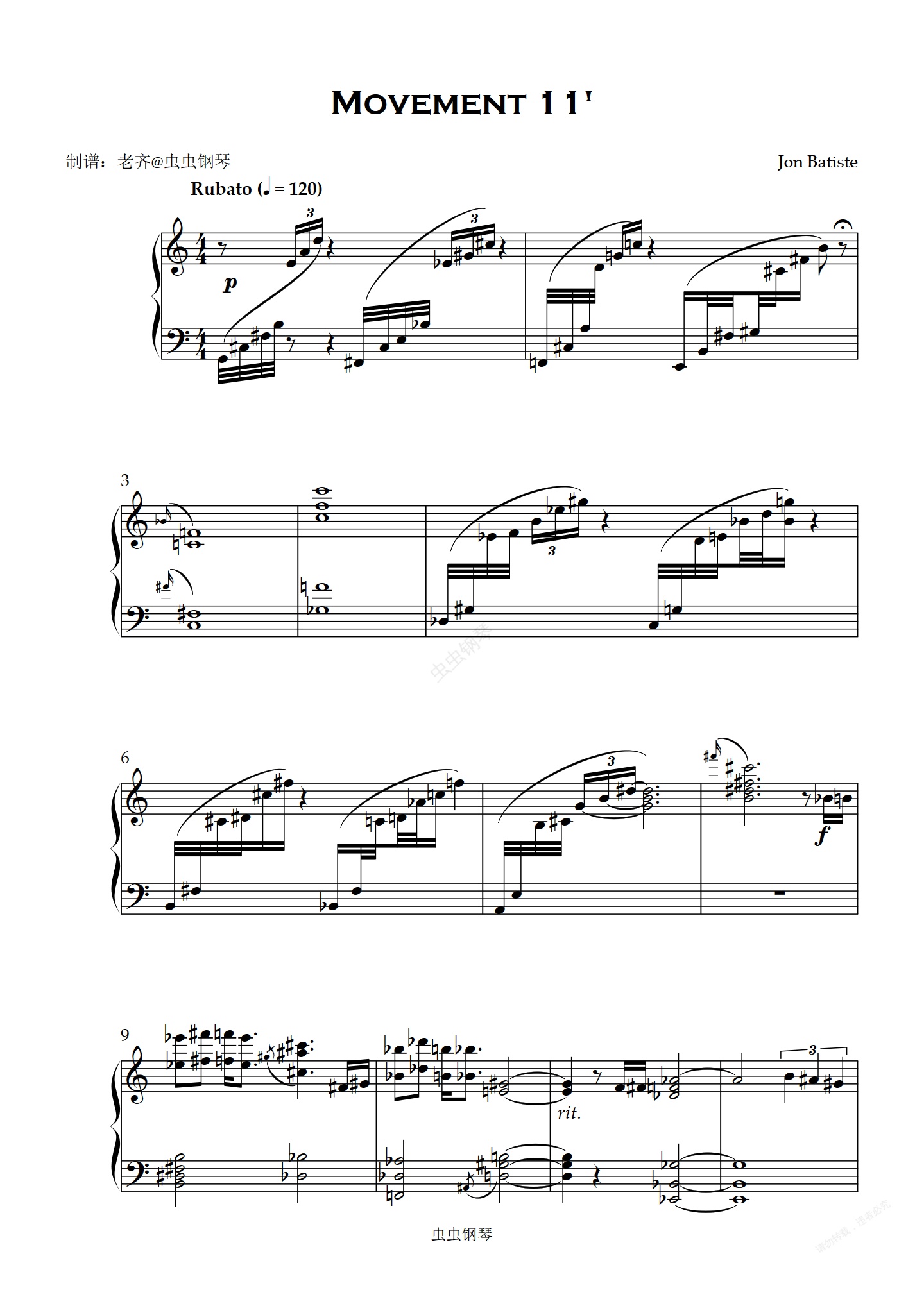 钢琴谱:【爵士】Movement 11'- Jon Batiste