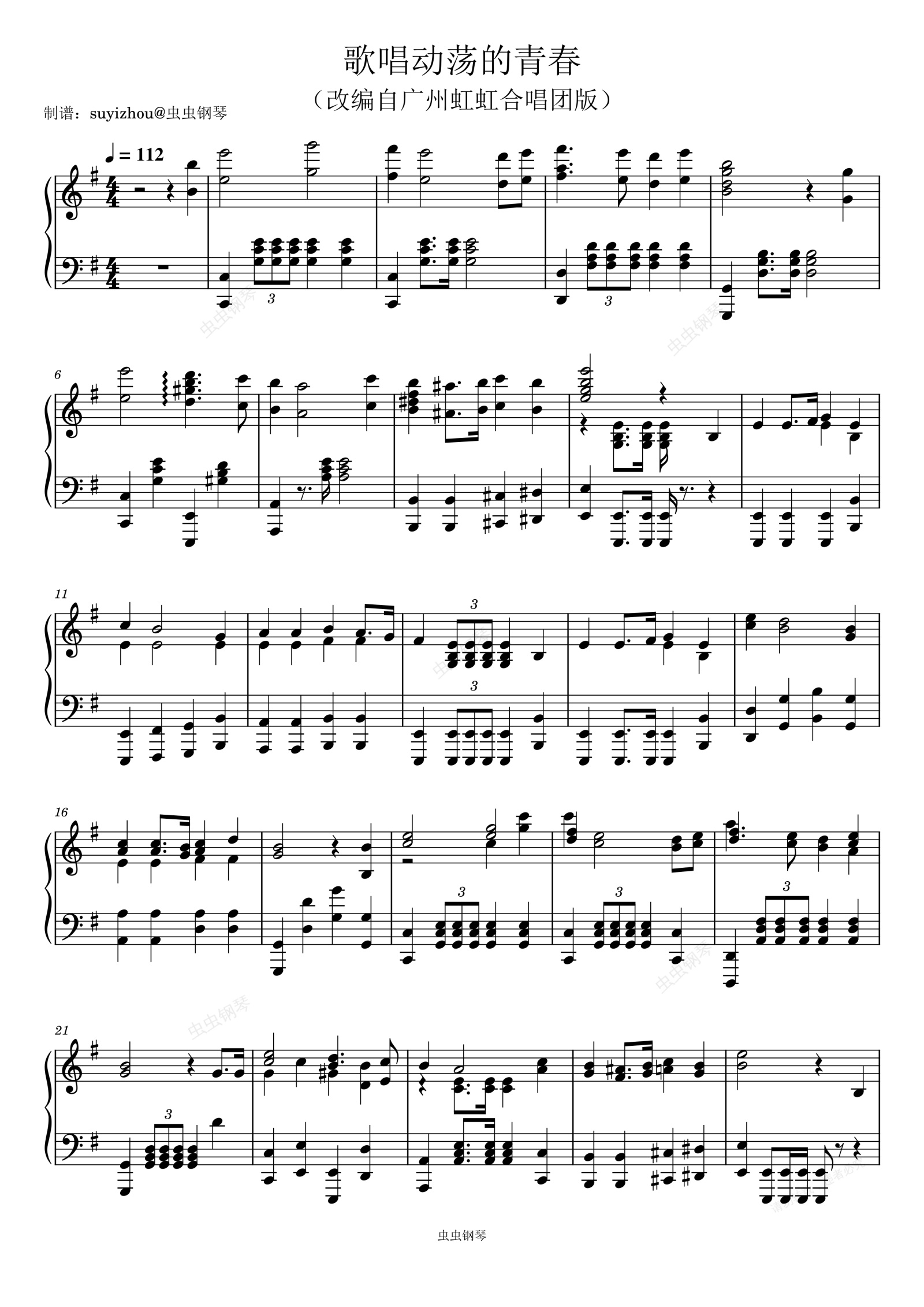 钢琴谱:歌唱动荡的青春(改编自广州虹虹合唱团版)
