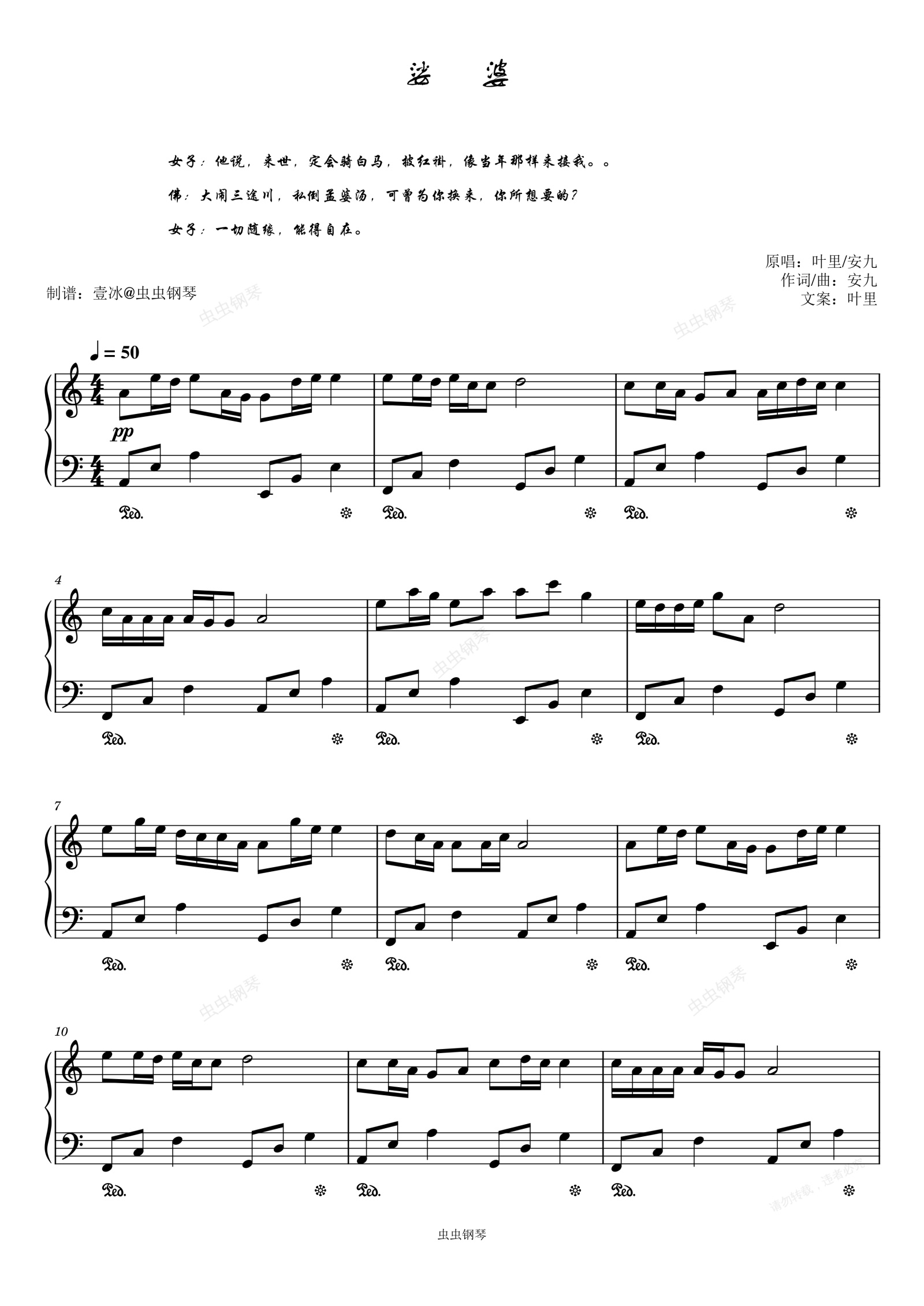 钢琴谱:娑婆//叶里/安九-原调