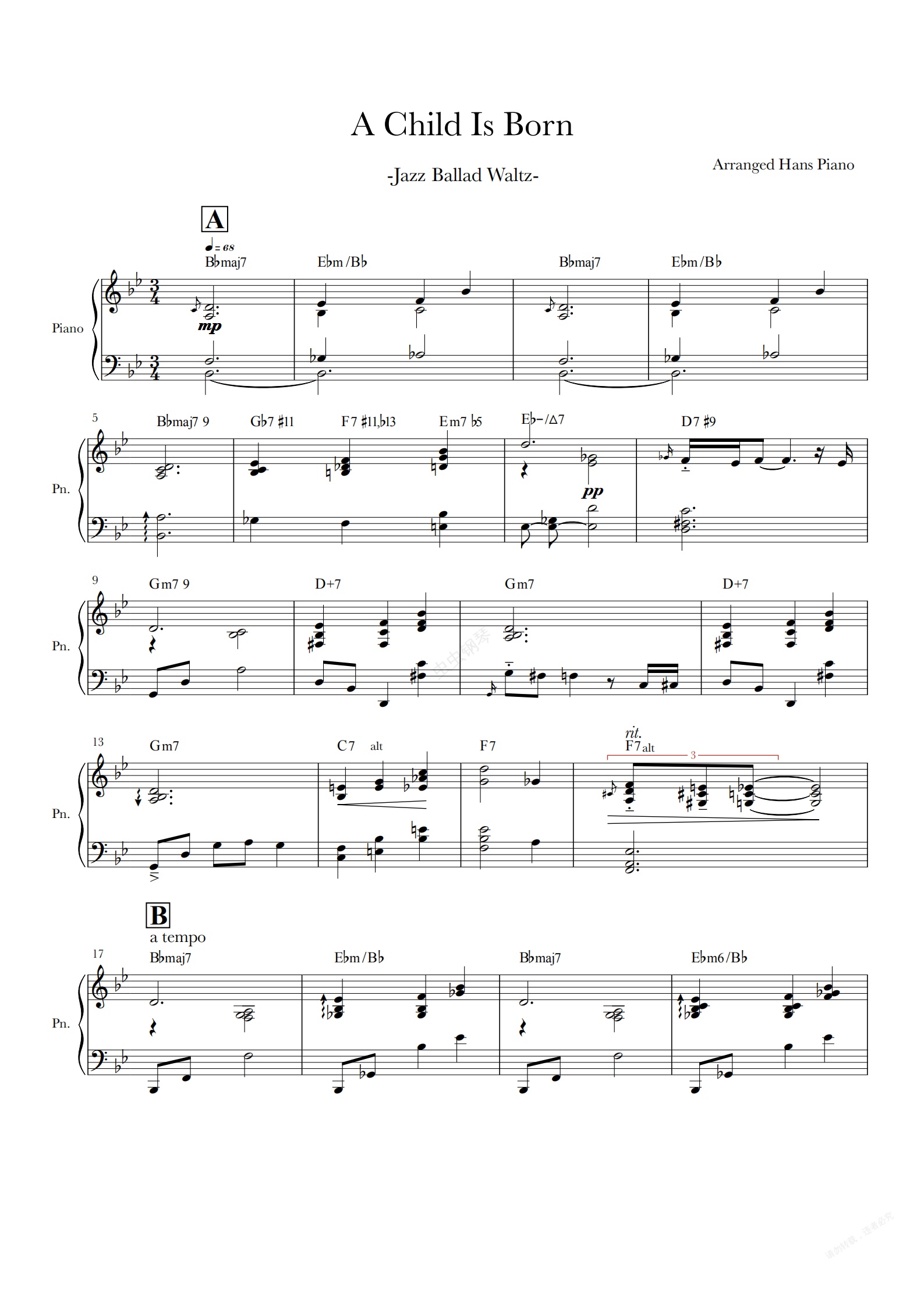 钢琴谱:Child born【免费】【爵士标准曲】泽大大 Hans piano