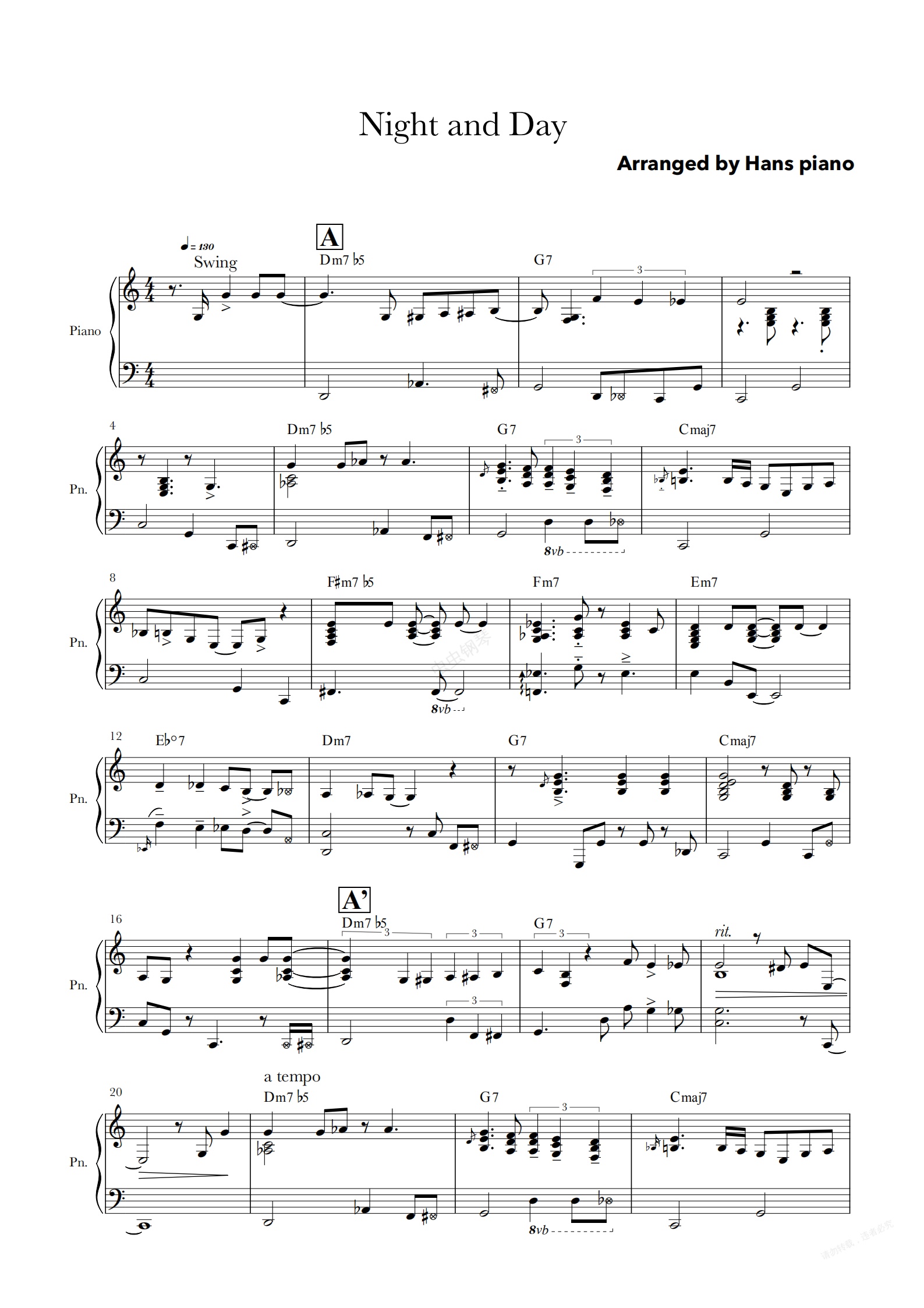钢琴谱:Night and Day【免费】【爵士标准曲】泽大大 Hans piano