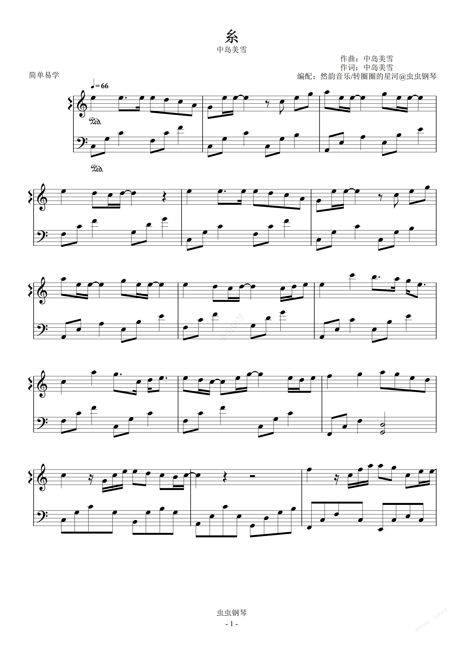 钢琴谱:【C调】糸(线)-中岛美雪 简单易学 菅田将晖