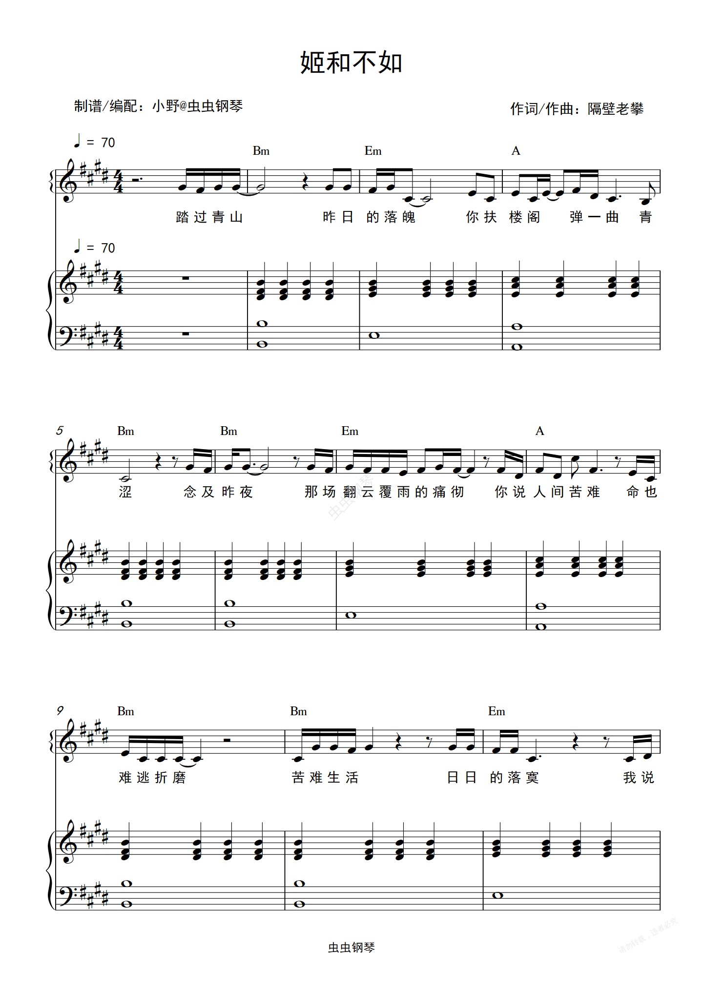 钢琴谱:姬和不如(和弦弹唱版)