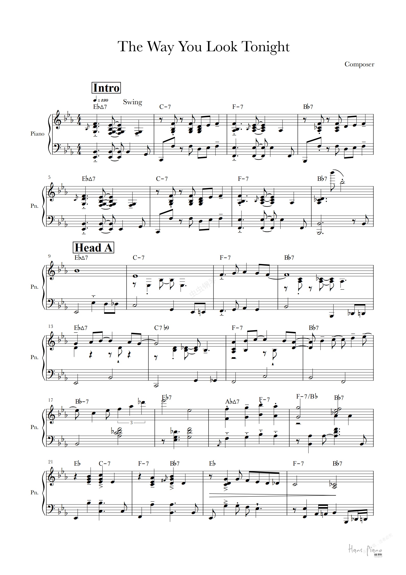 钢琴谱:The Way You Look Tonight【免费】【爵士标准曲】泽大大 Hans piano