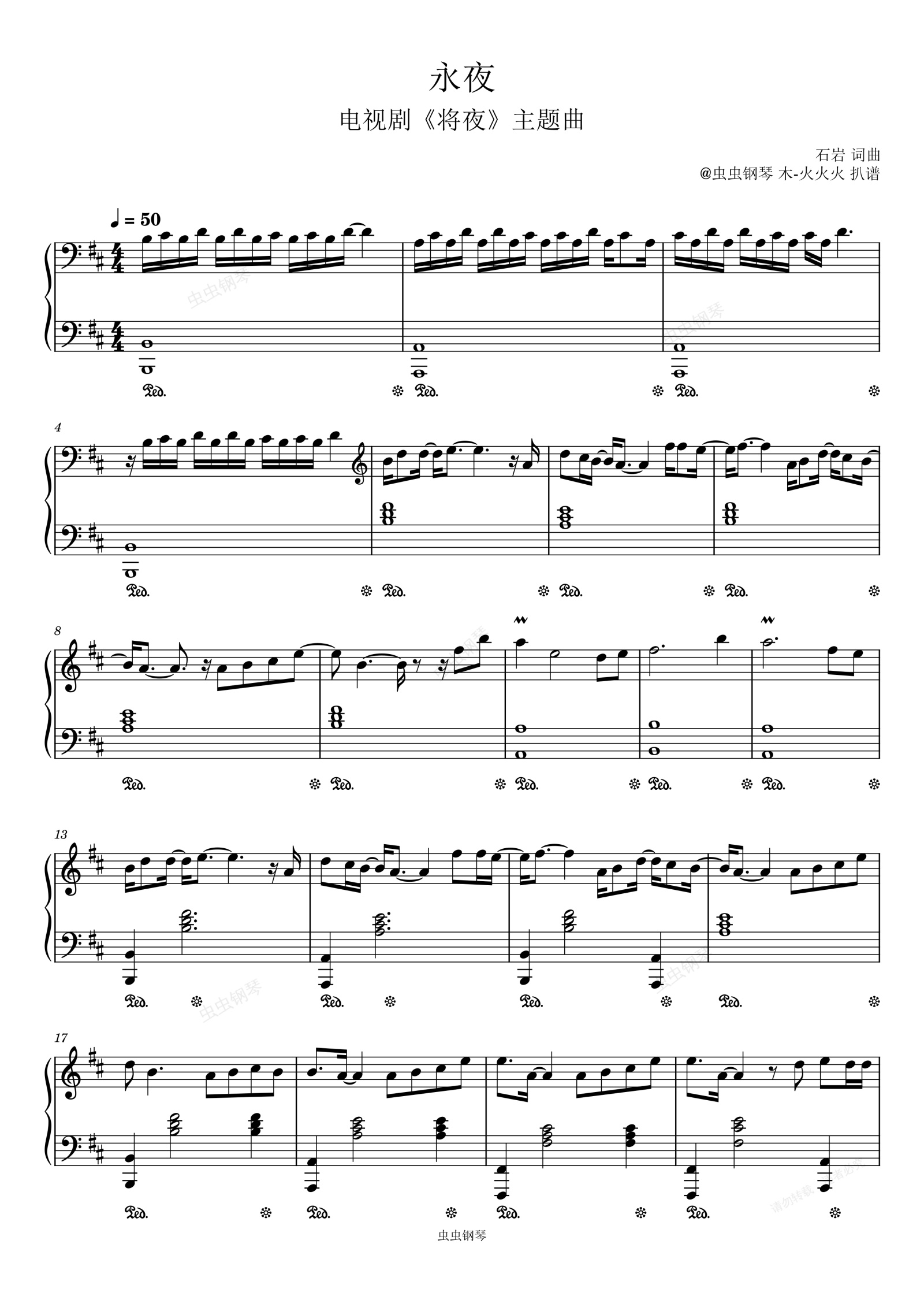 钢琴谱:永夜-电视剧《将夜》主题曲-D调-简化版