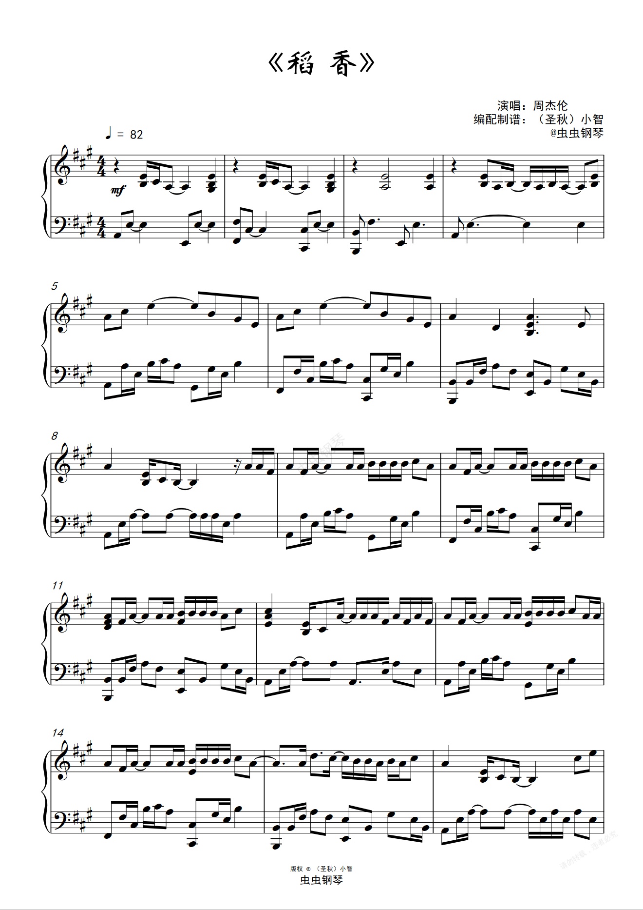 钢琴谱:《稻香》高度还原(演奏版)
