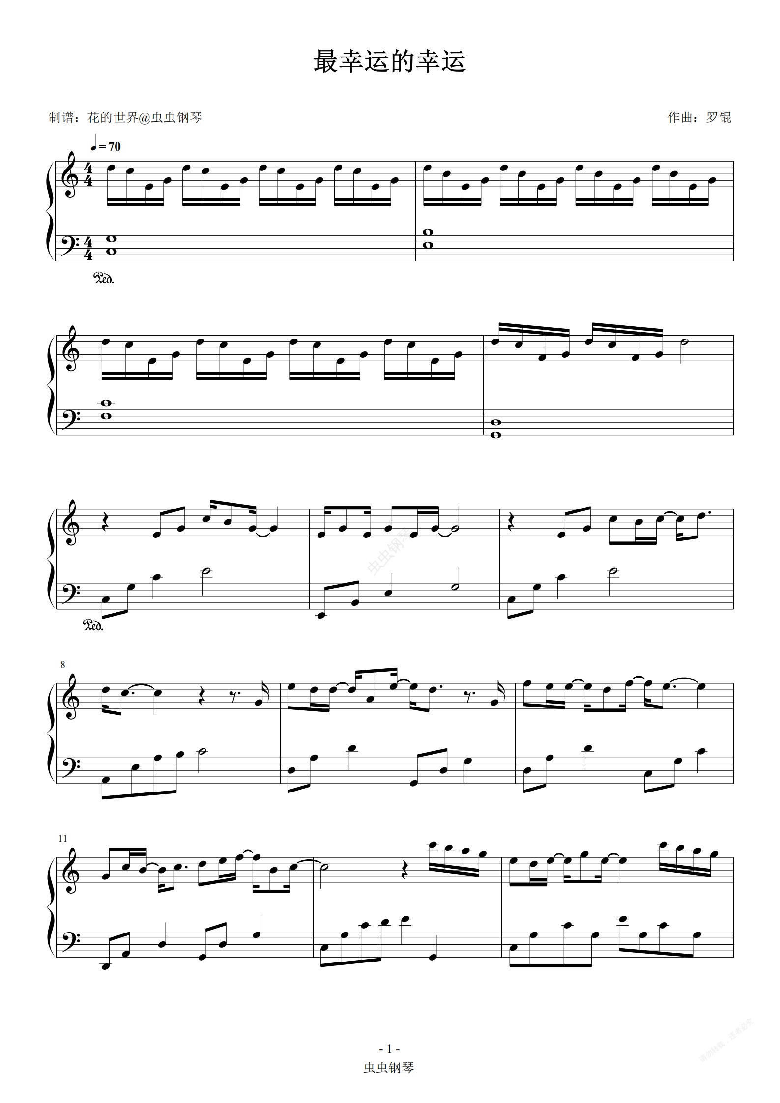 钢琴谱:最幸运的幸运  C调简易版  肖战
