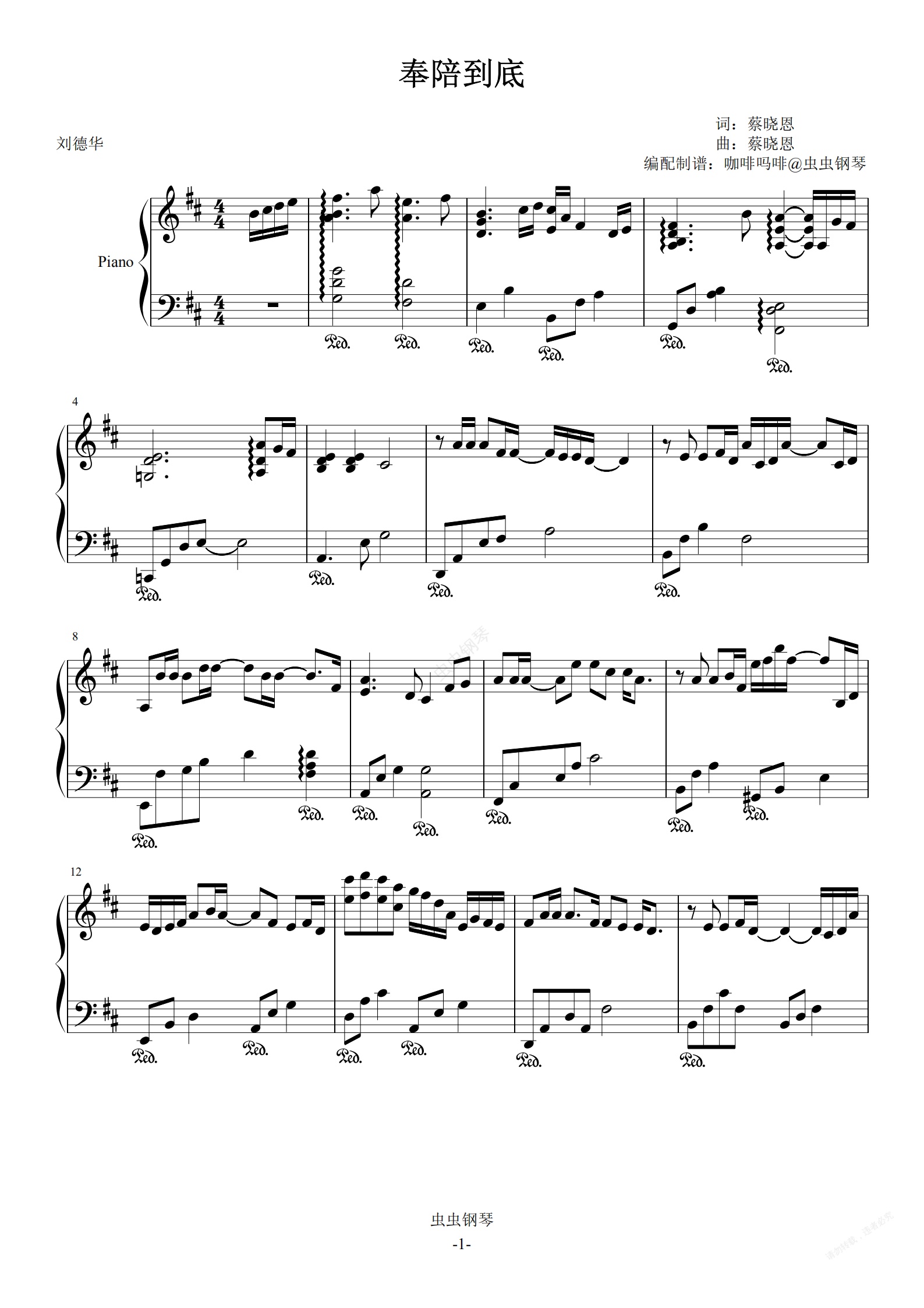 钢琴谱:奉陪到底-刘德华 钢琴独奏谱