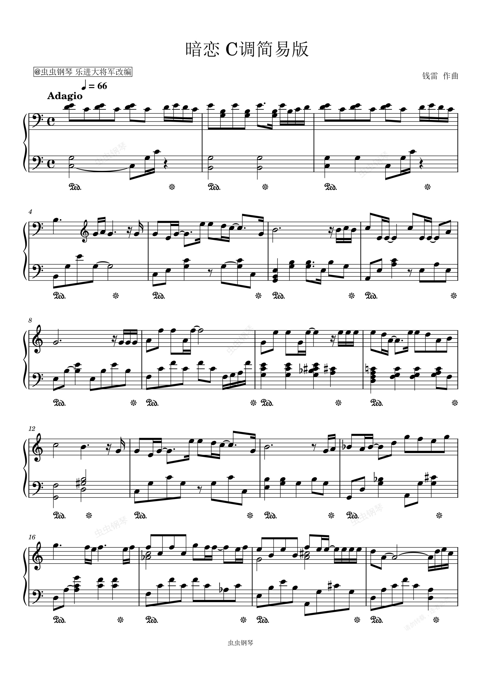 钢琴谱:暗恋 张靓颖 C调简易版 电影《暗恋·橘生淮南》主题曲