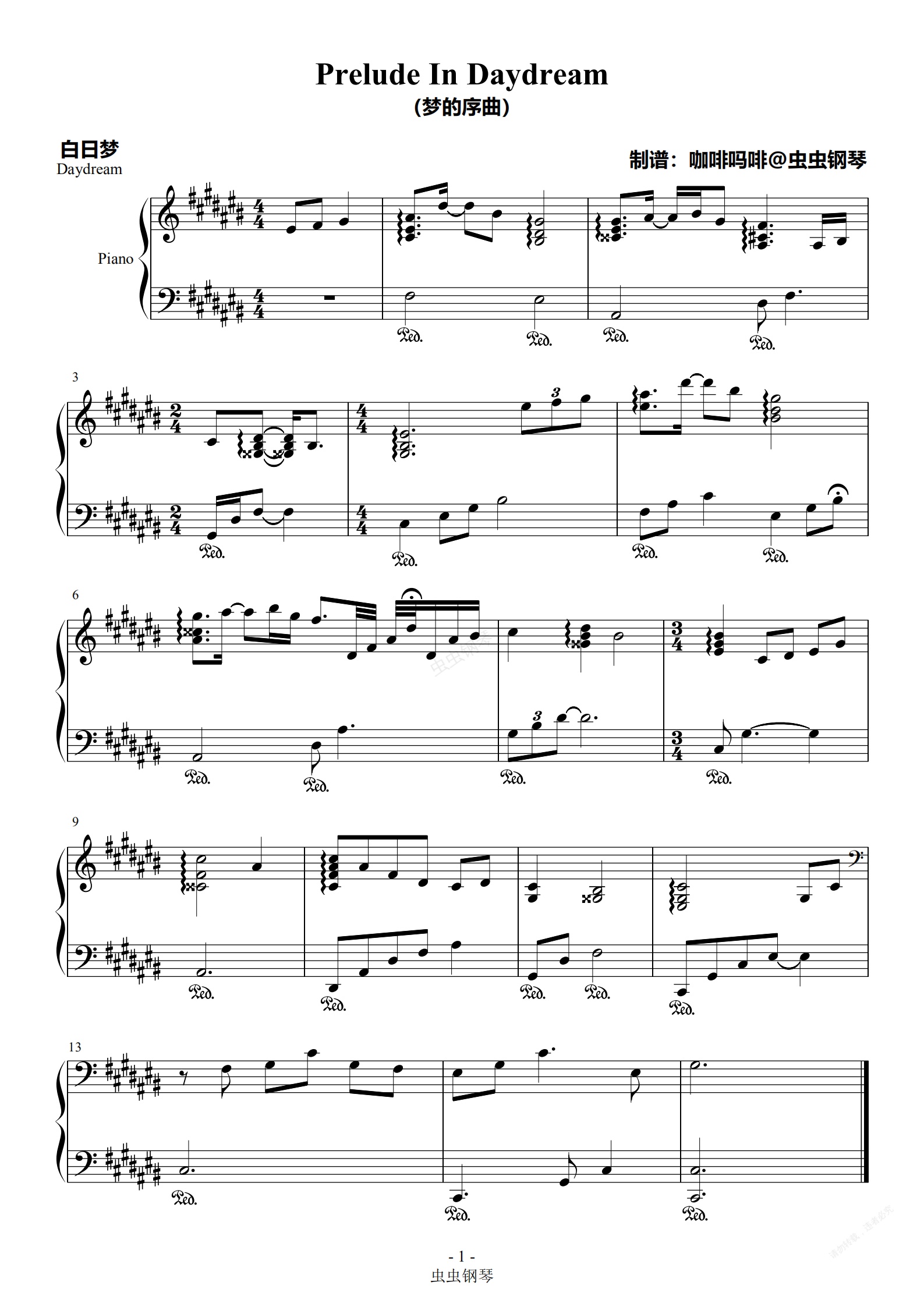 钢琴谱:Prelude In Daydream(梦的序曲)-Daydream钢琴谱