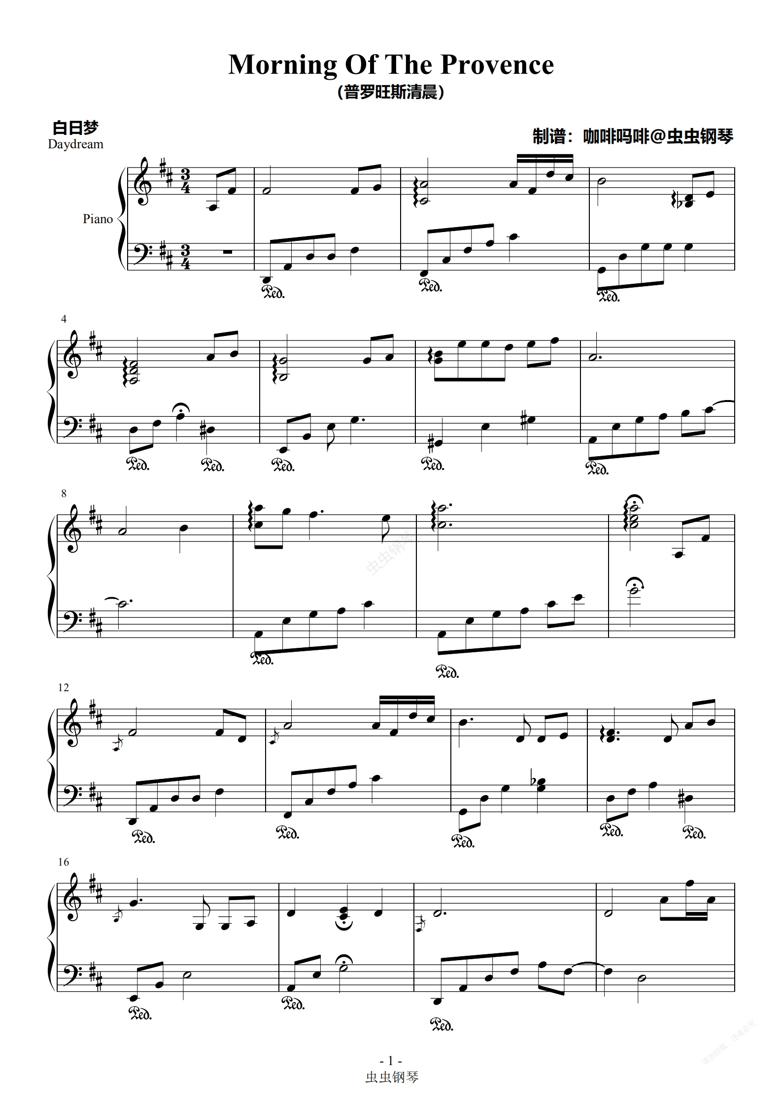 钢琴谱:Morning Of The Provence(普罗旺斯清晨)-Daydream