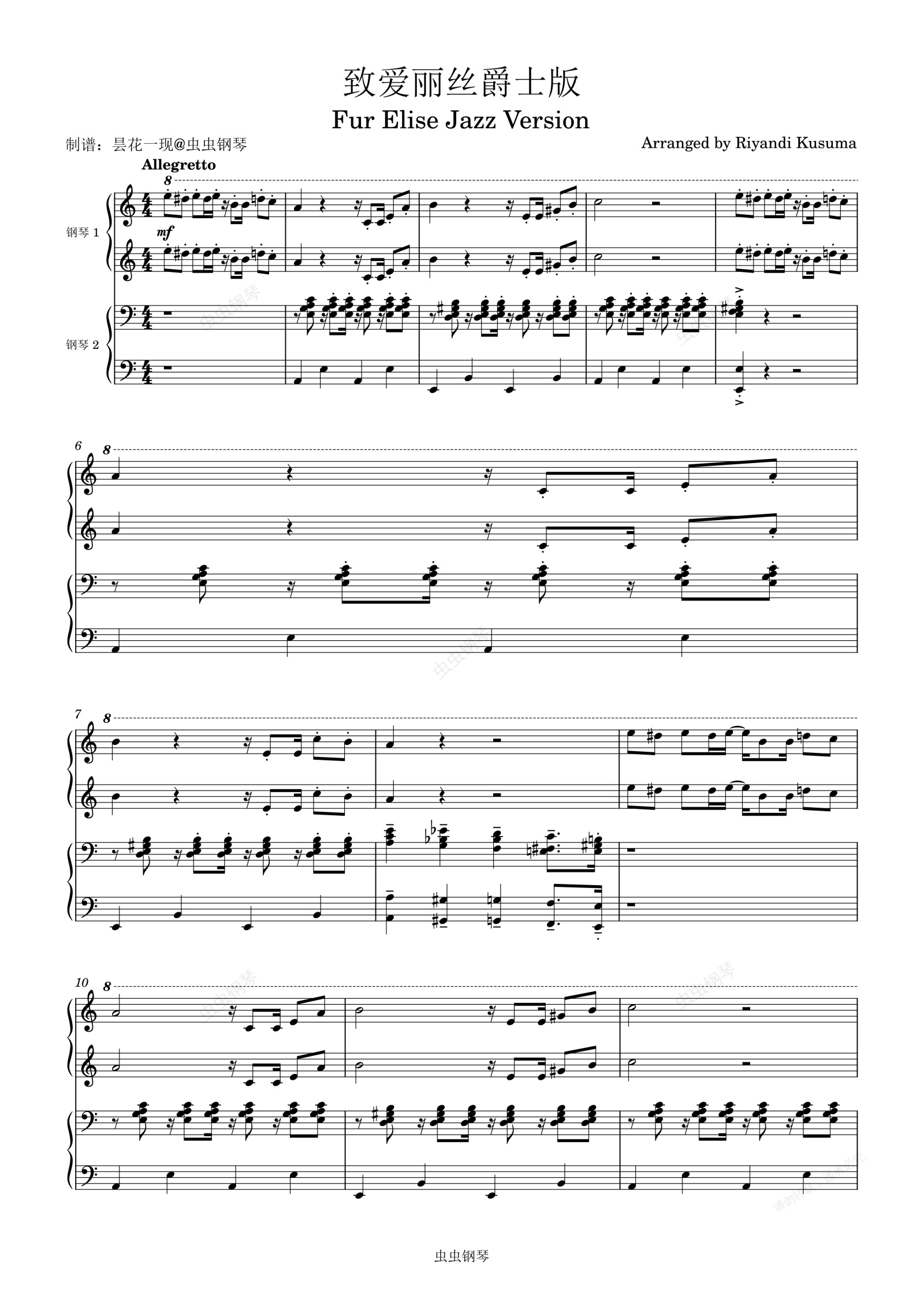 钢琴谱:致爱丽丝爵士版,四手联弹