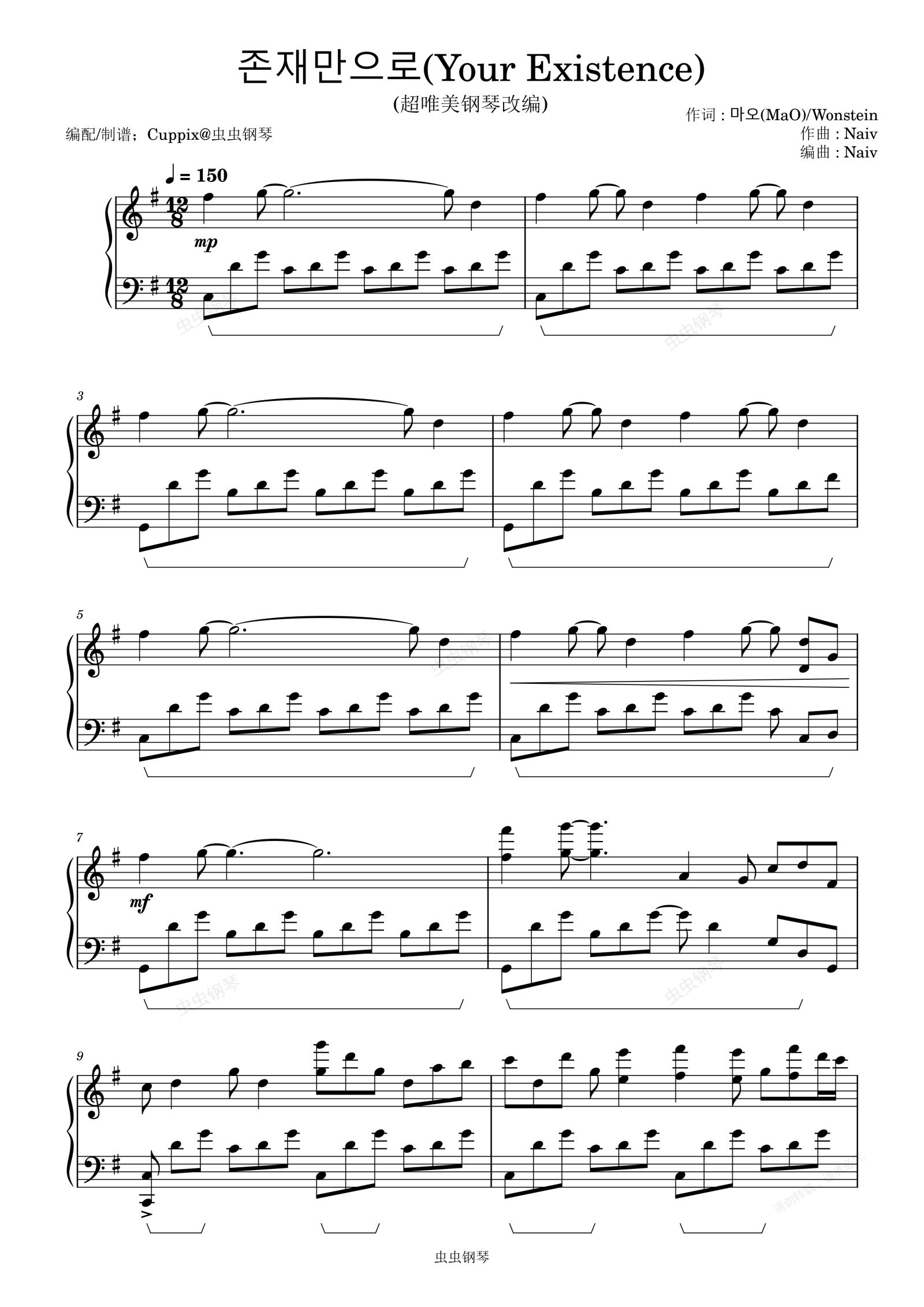 钢琴谱:《존재만으로》(Your Existence) - 超唯美钢琴(二十五,二十一 Wonstein)