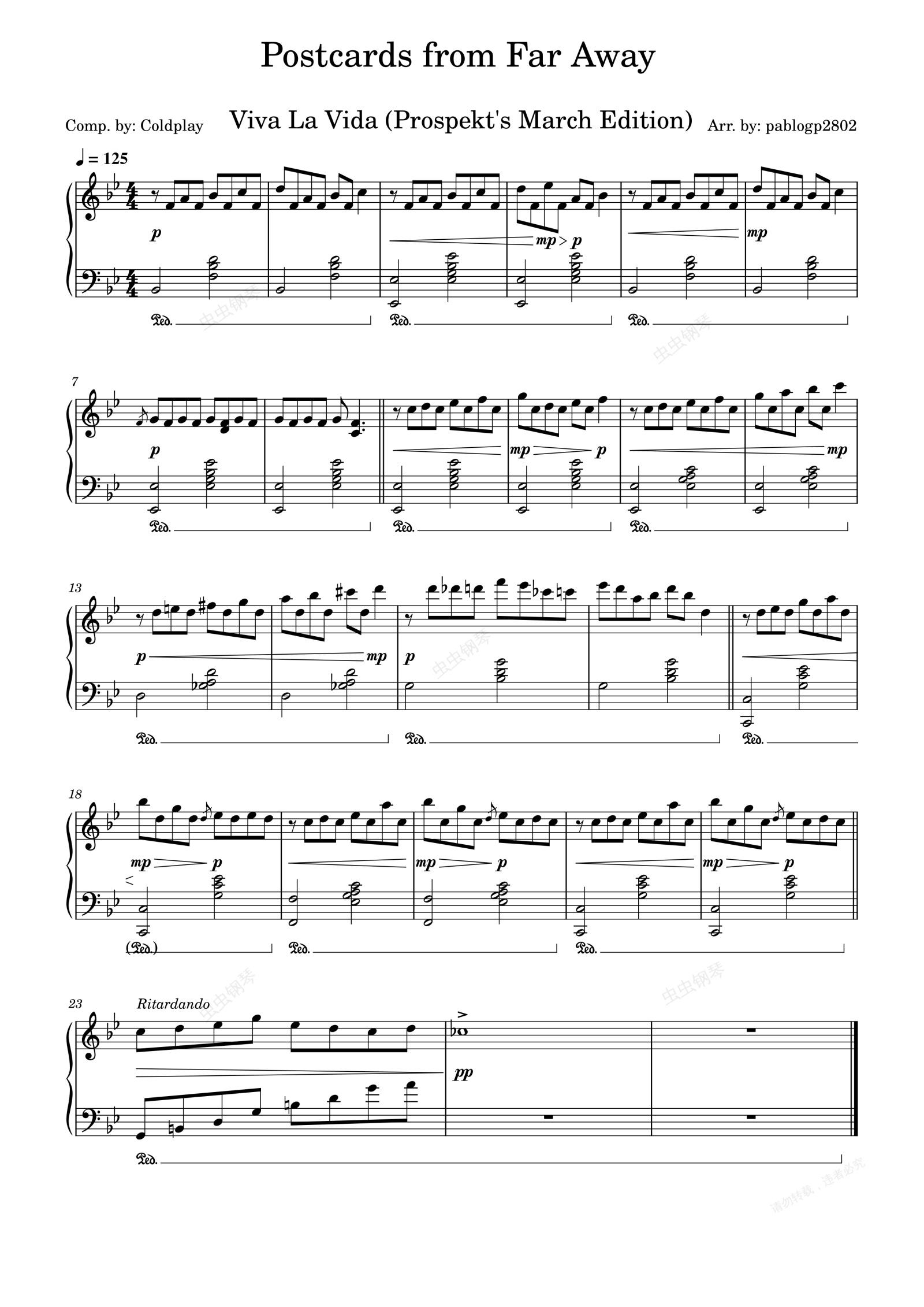 钢琴谱:Postcards from Far Away-Coldplay