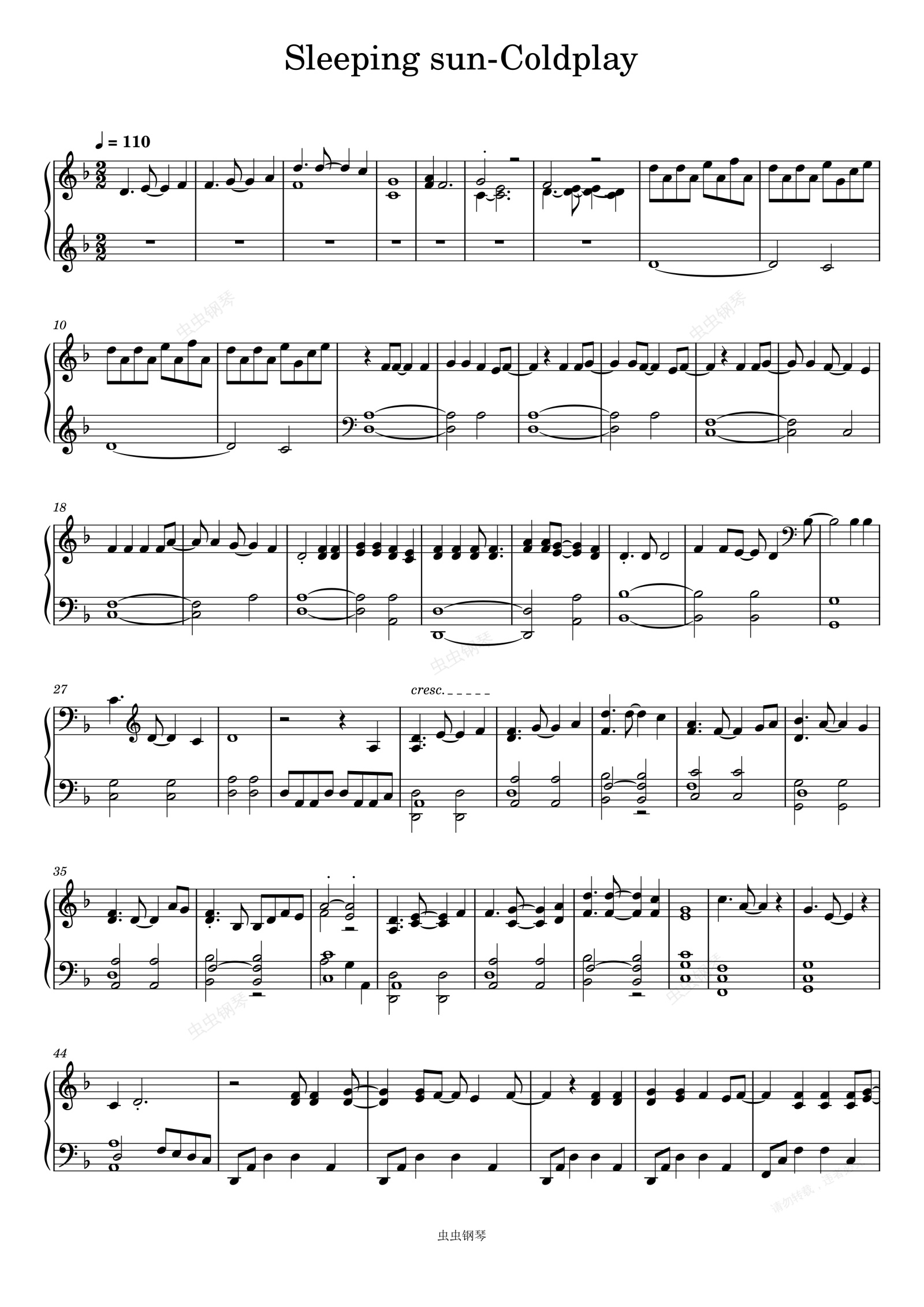 钢琴谱:Sleeping sun-Coldplay