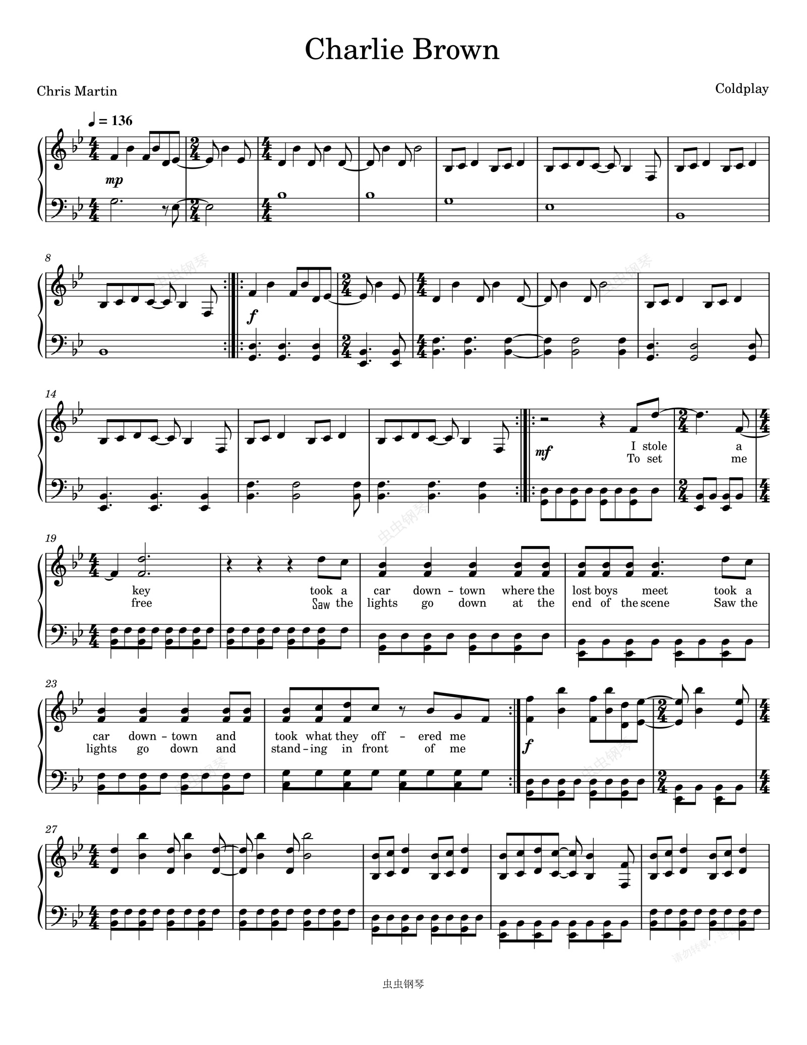 钢琴谱:Charlie Brown-Coldplay