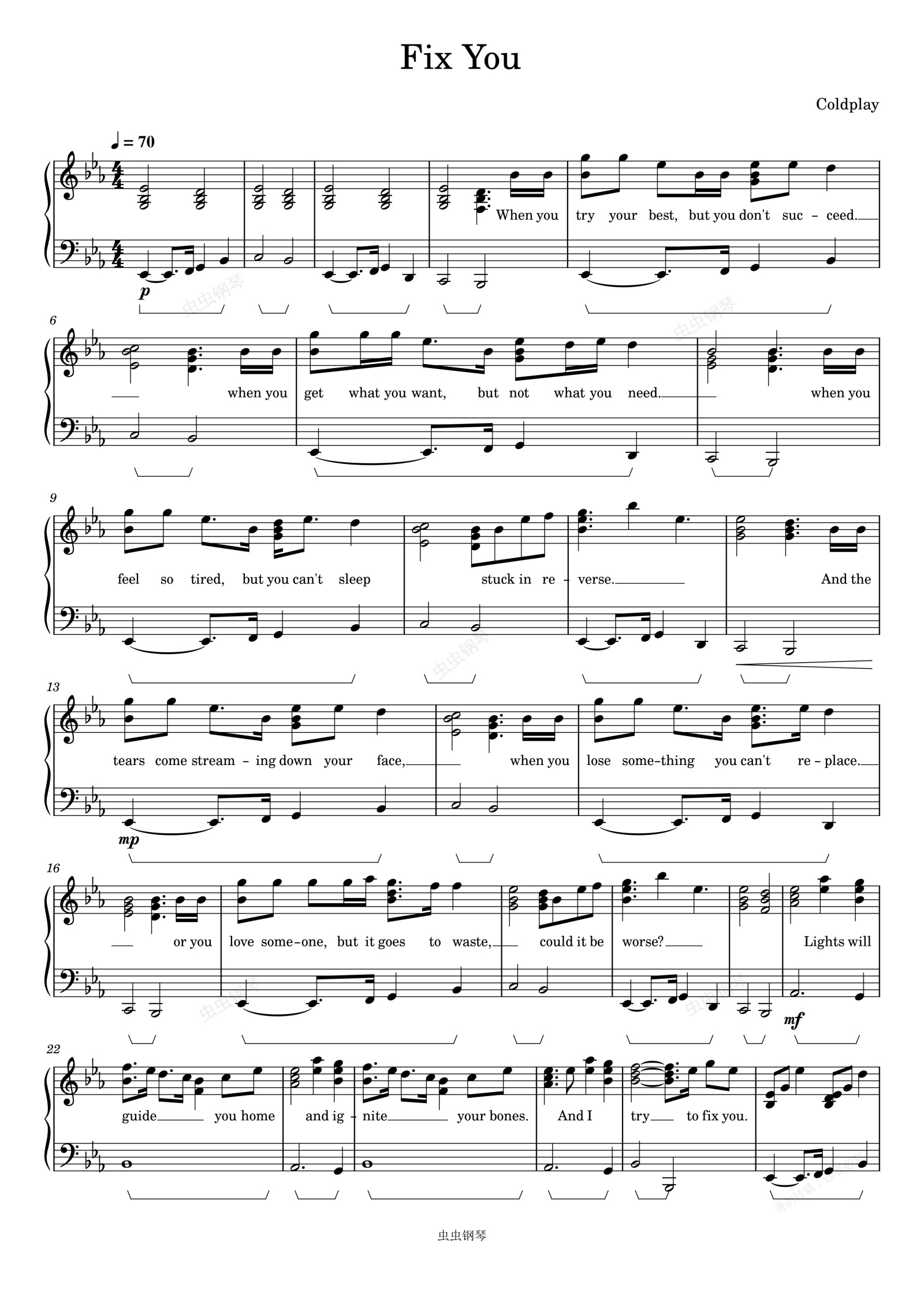 钢琴谱:Fix You-Coldplay
