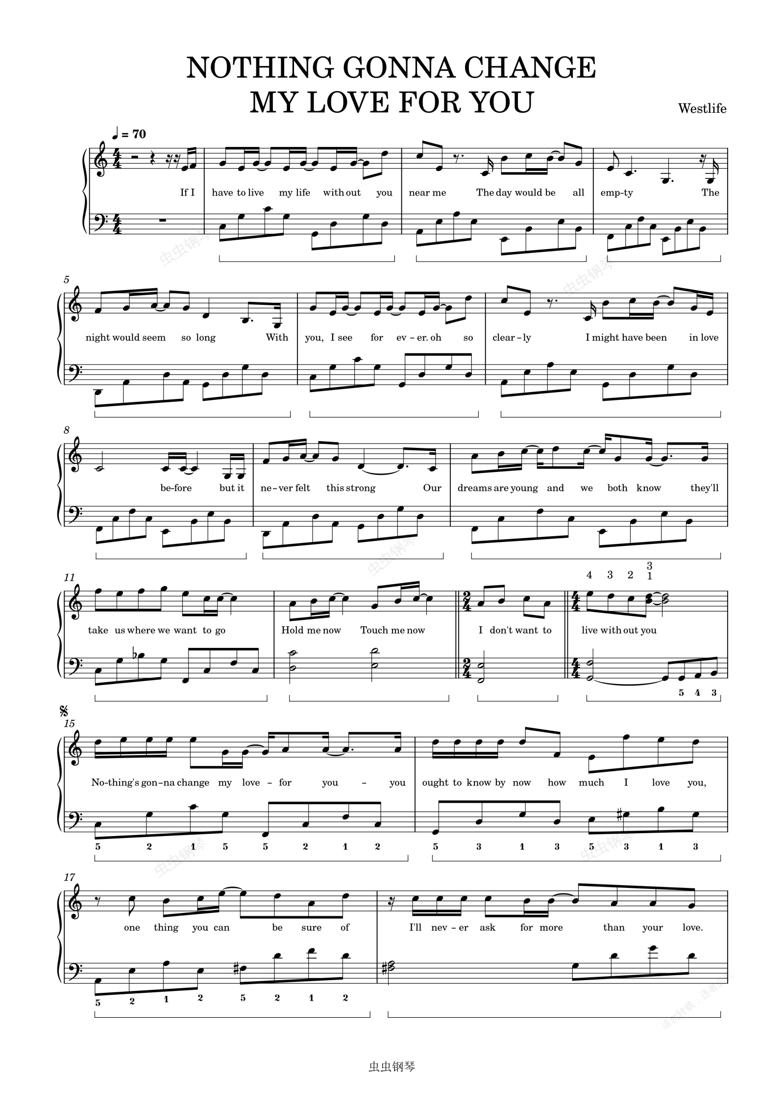 钢琴谱:Westlife-Nothings Gonna Change My Love For You