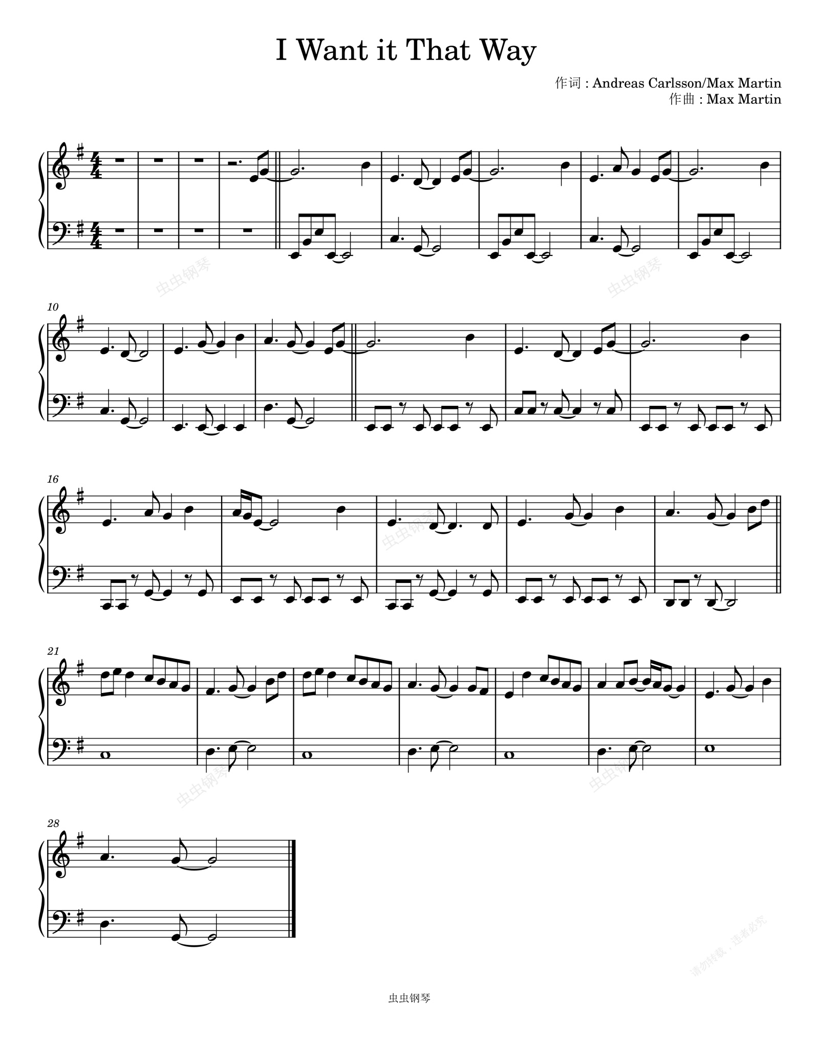 钢琴谱:I Want It That Way-Backstreet Boys