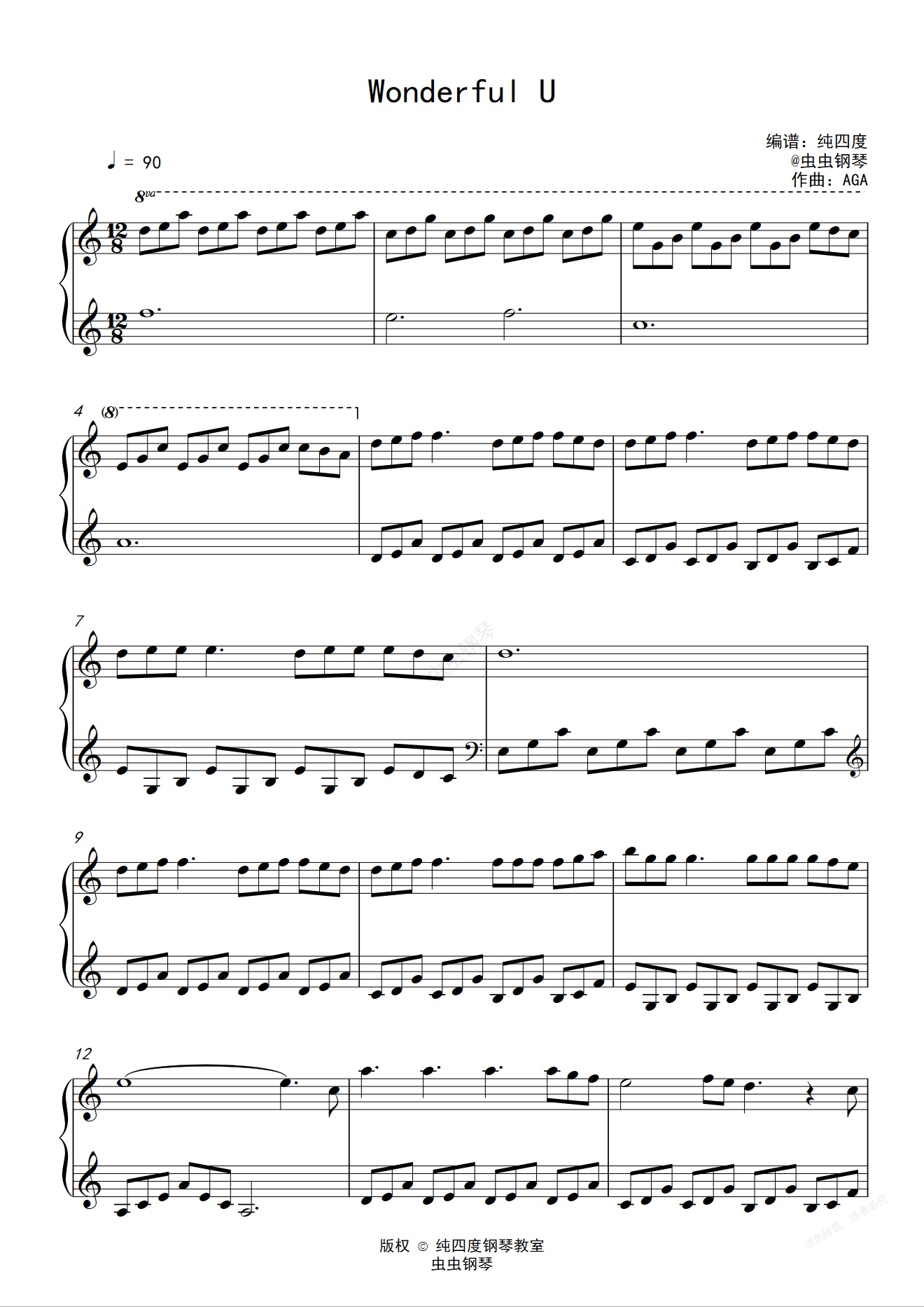 钢琴谱:Wonderful U(完美C调版)