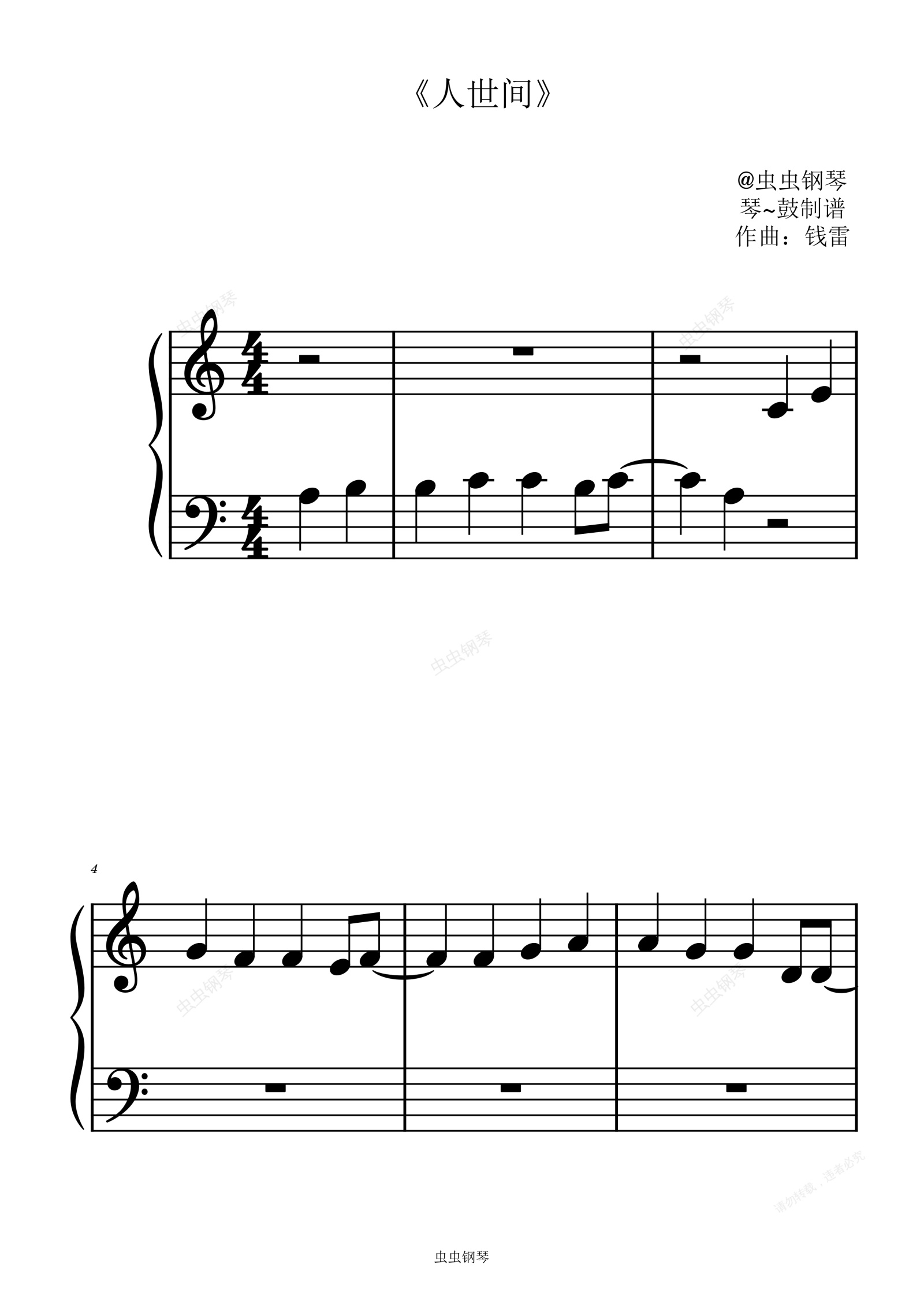 钢琴谱:琴鼓制谱《人世间》小汤版 入门版 初级版 C调