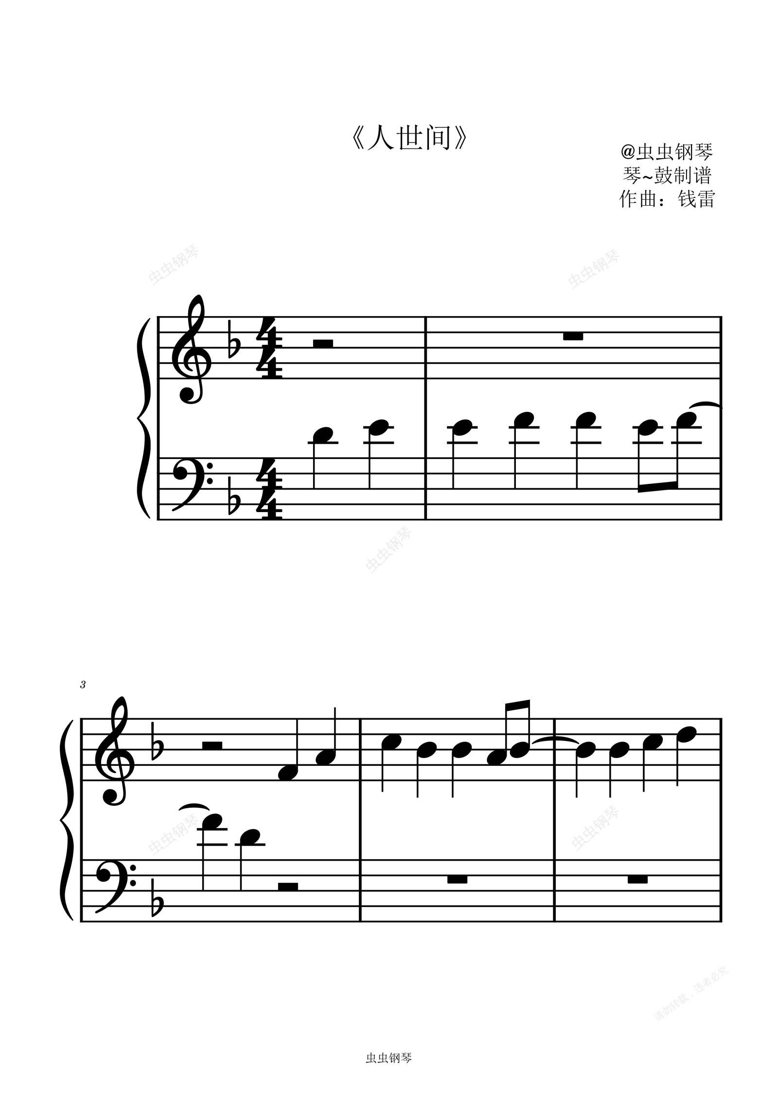 钢琴谱:琴鼓制谱《人世间》幼儿版 小汤版 入门版 初级版