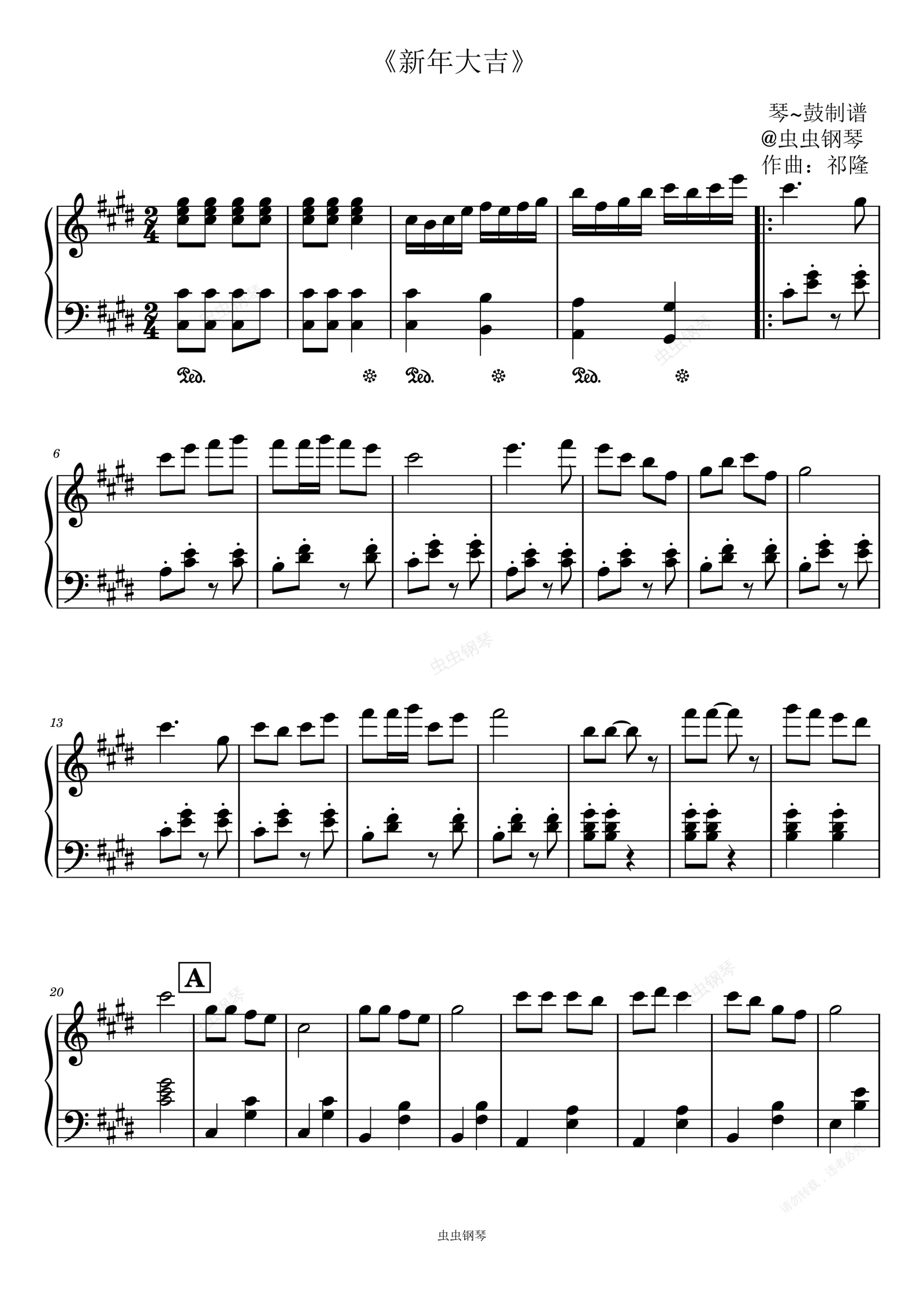 钢琴谱:琴鼓制谱《新年大吉》祁隆-钢琴谱全网首发