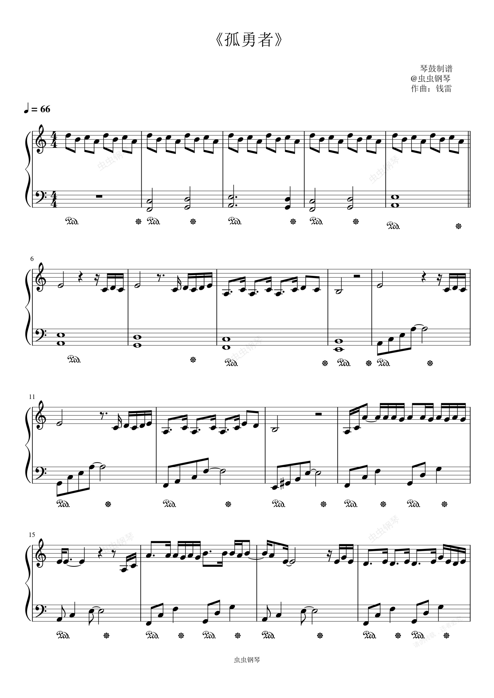 钢琴谱:琴鼓制谱《孤勇者》C调完整版 好听好弹