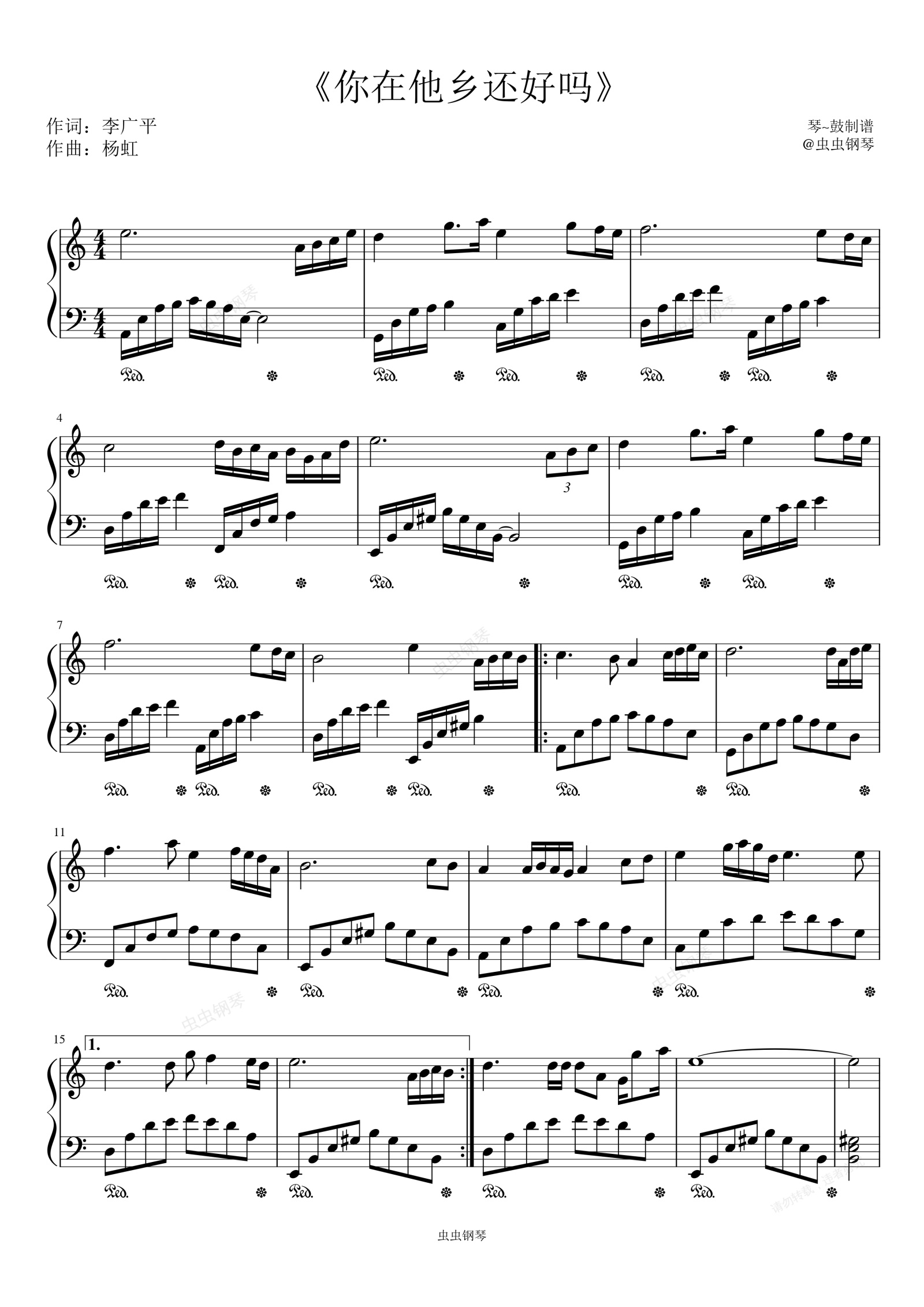 钢琴谱:琴鼓制谱《你在他乡还好吗》精简版C调 老歌经典
