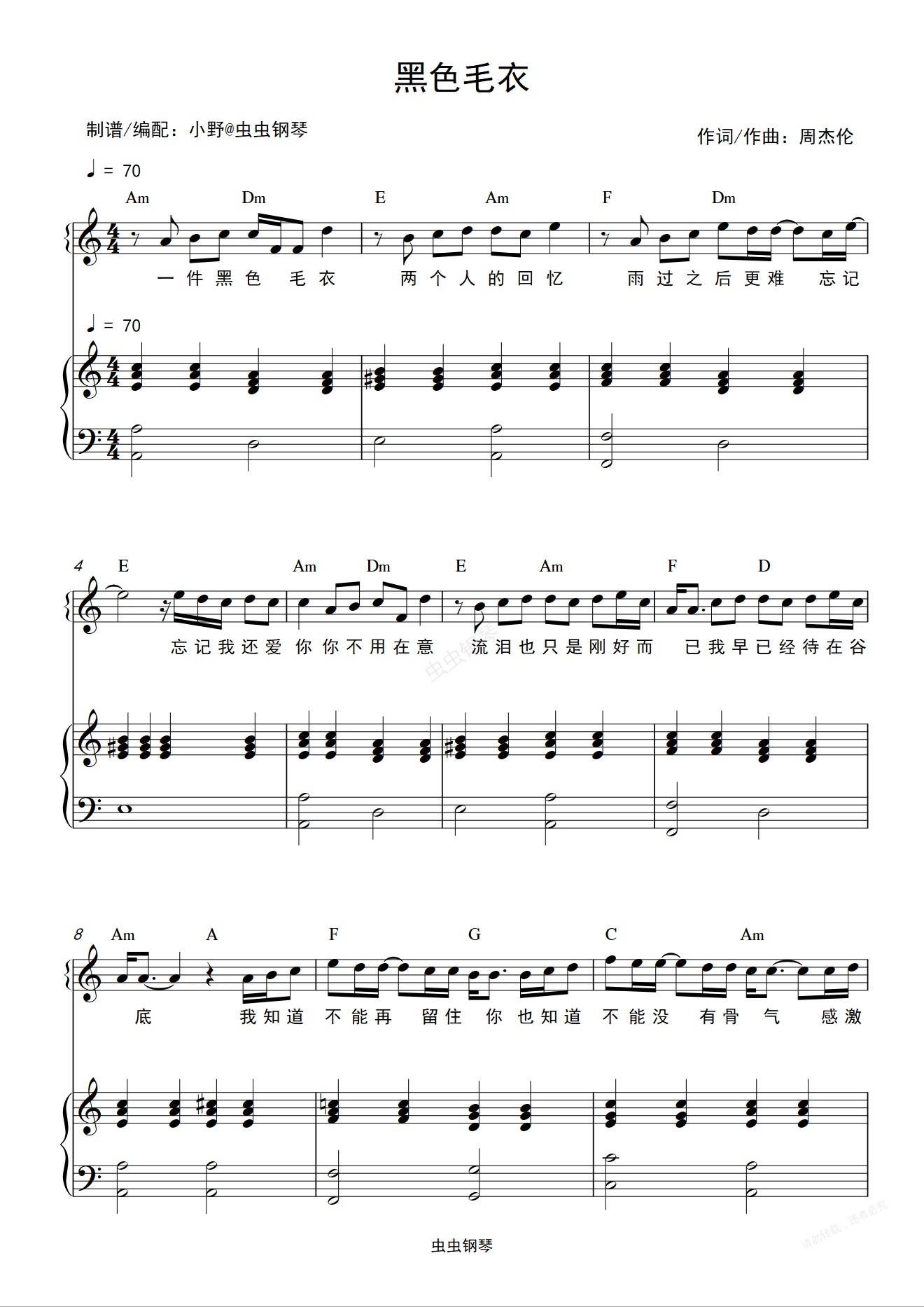 钢琴谱:黑色毛衣(和弦弹唱版)