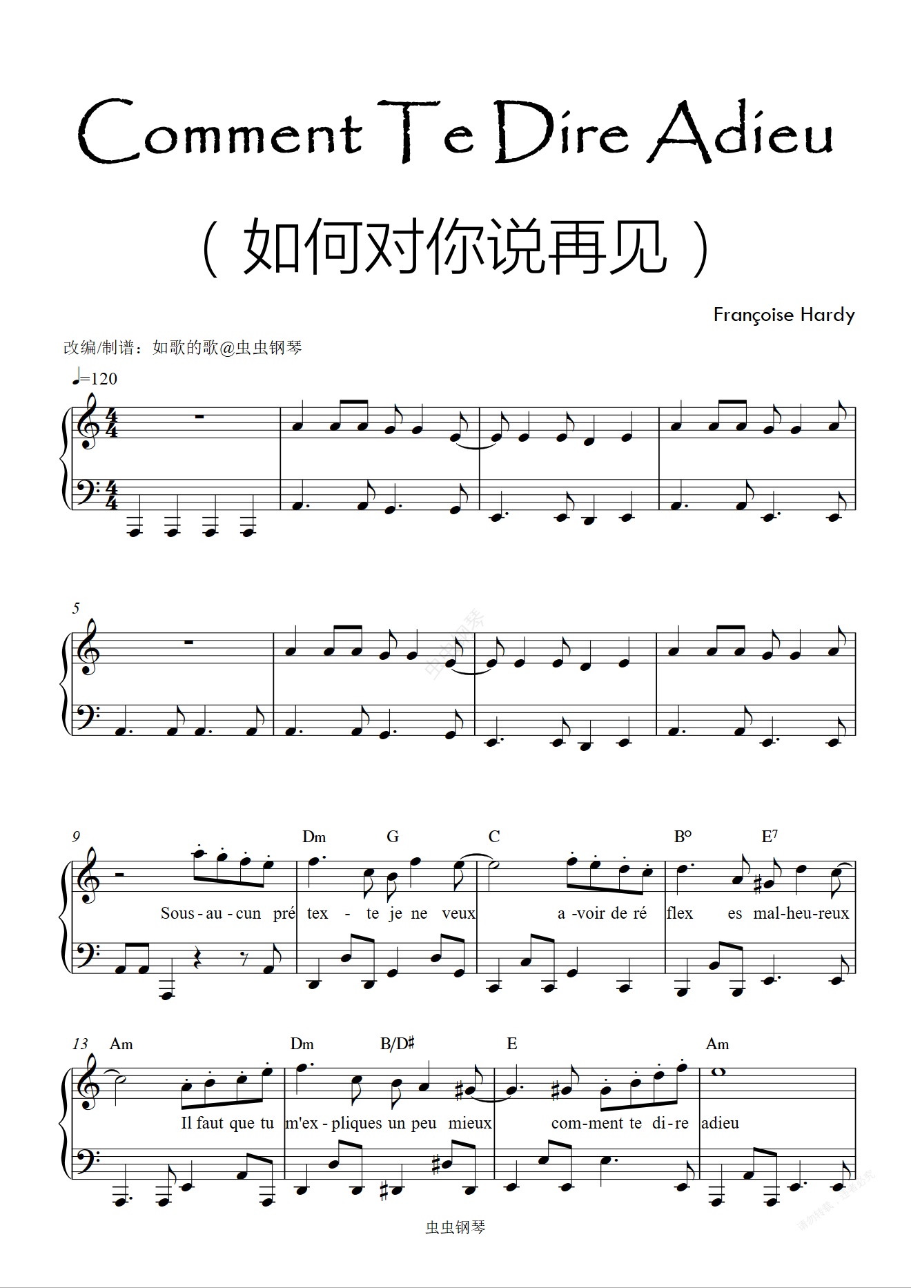 钢琴谱:Comment Te Dire Adieu简化a调法语情歌弹唱经典-如何对你说再见