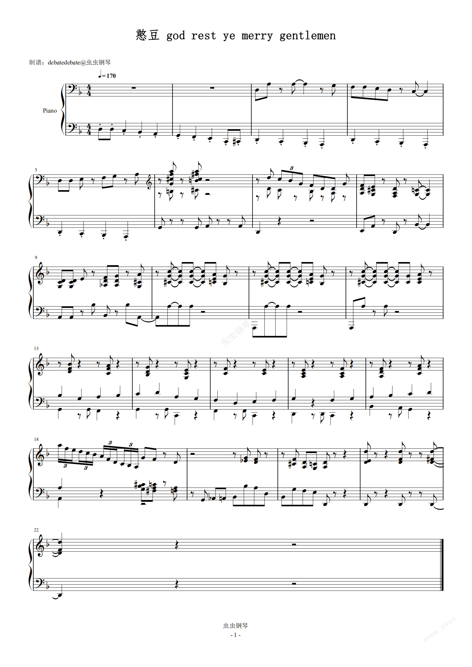 钢琴谱:憨豆 god rest ye merry gentlemen