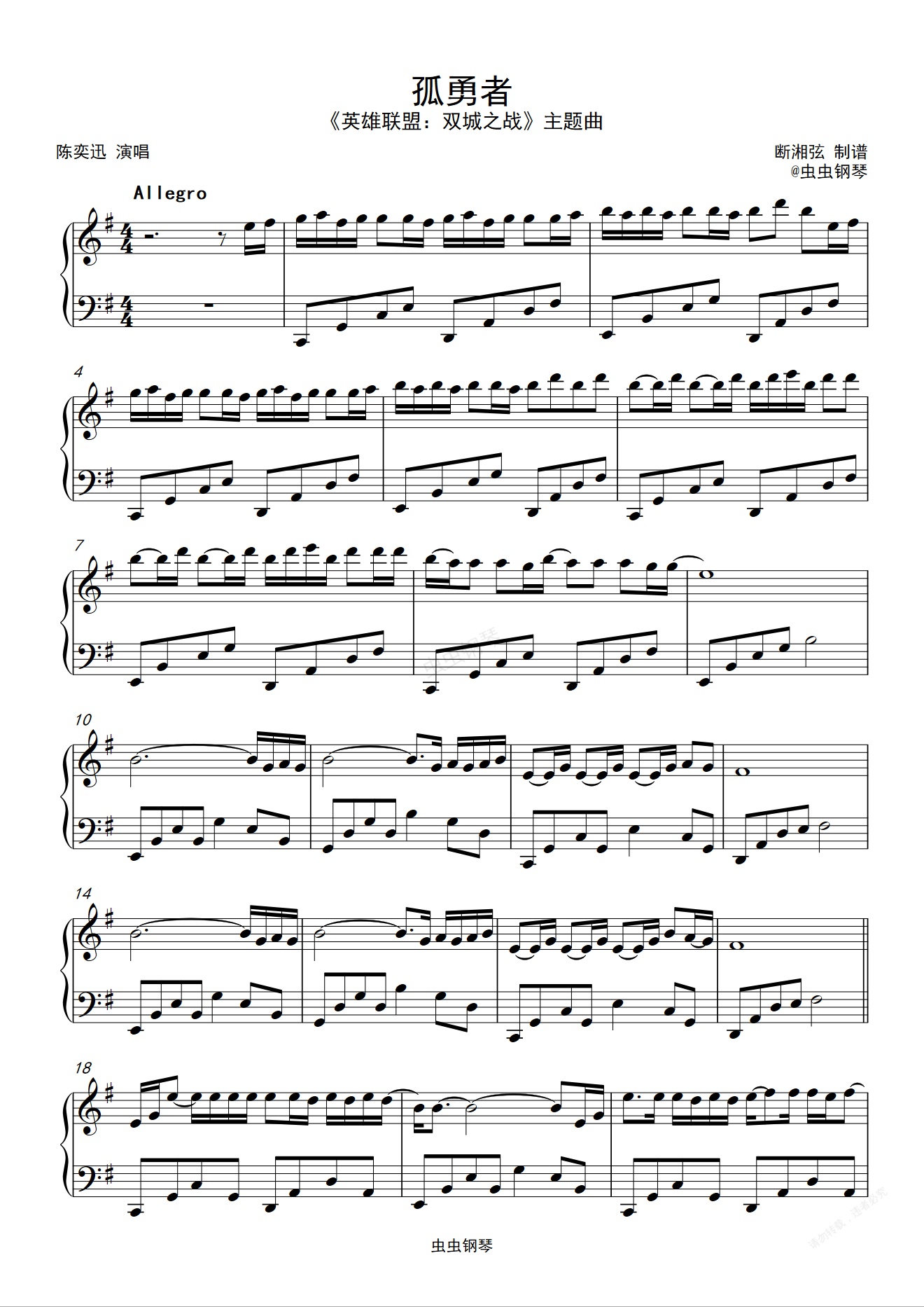 • 小城夏天钢琴谱_G调五线谱_BLI利比