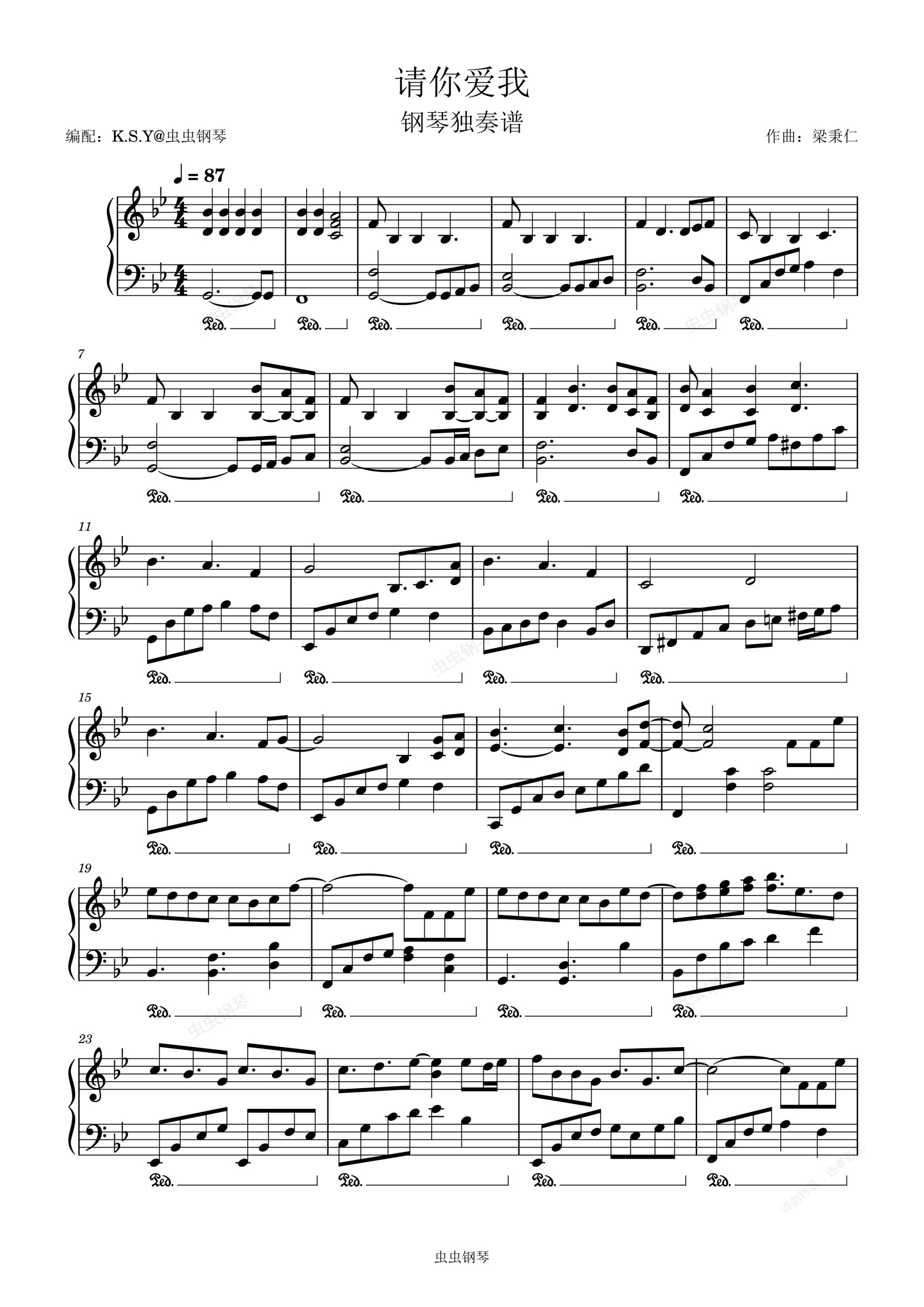 钢琴谱:请你爱我-周柏豪-原调独奏