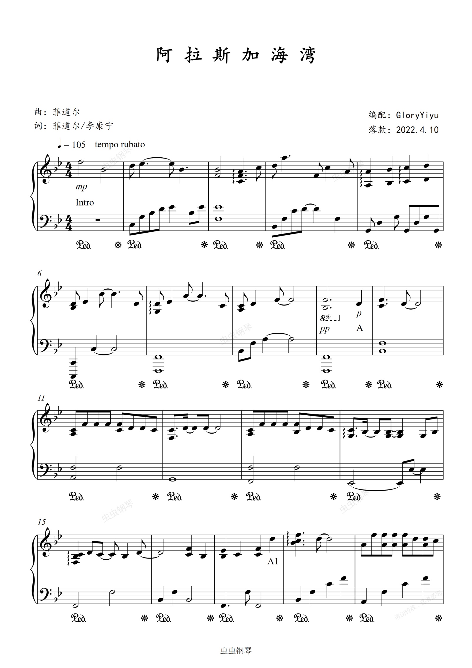 钢琴谱:阿拉斯加海湾 原调精编版(编配:一羽之荣)