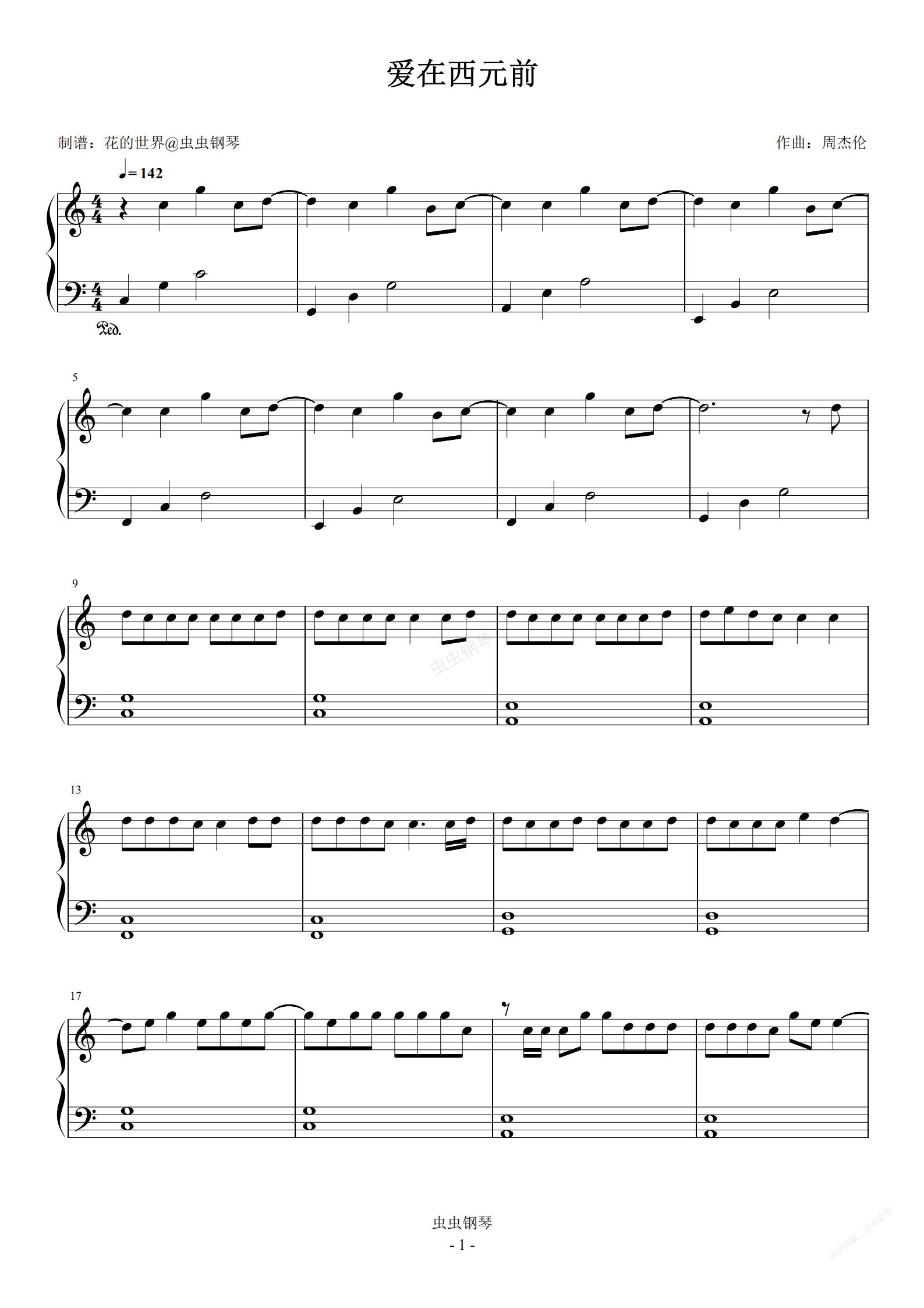钢琴谱:爱在西元前 C调简易版 周杰伦