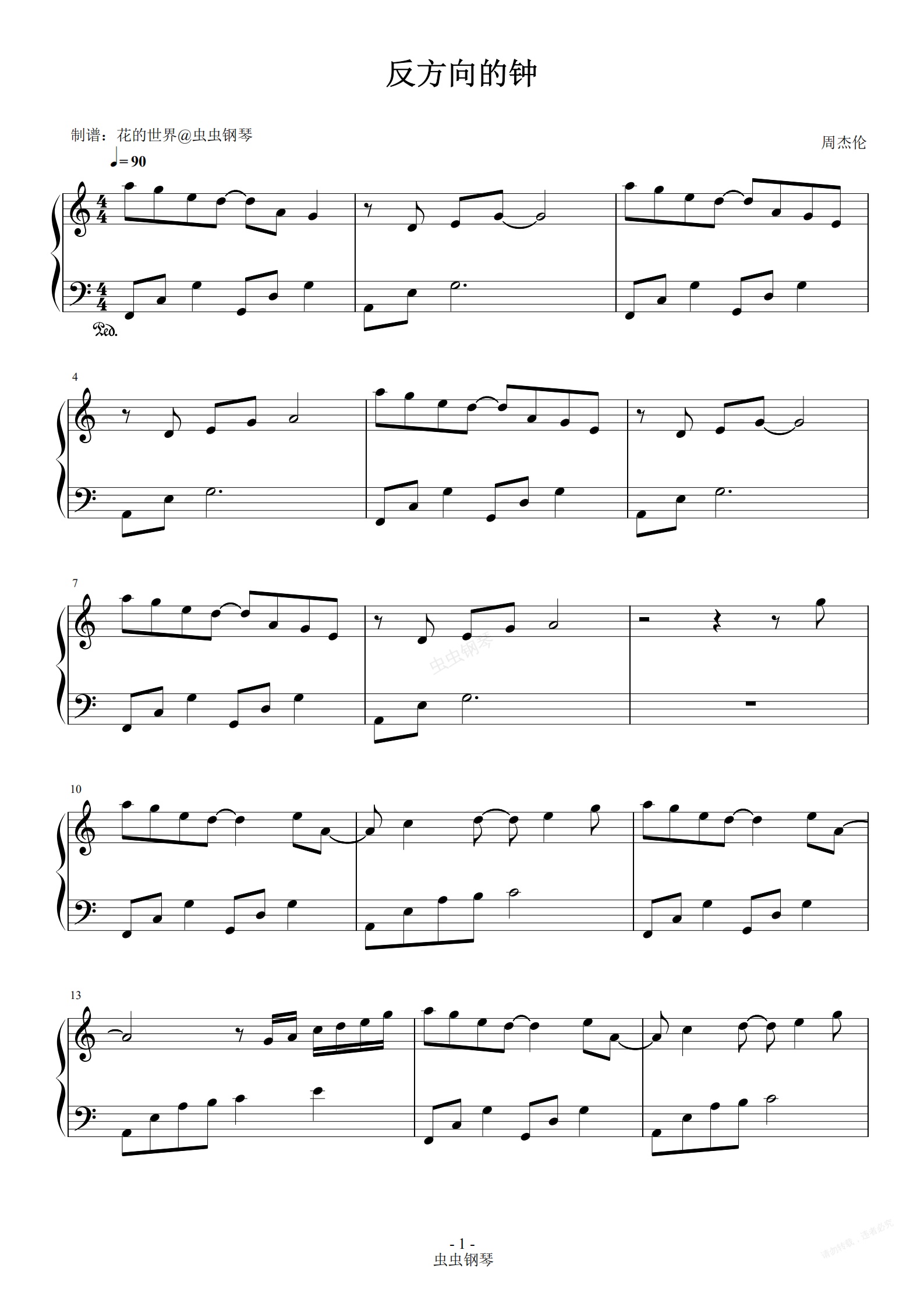 钢琴谱:反方向的钟 C调简易版 周杰伦