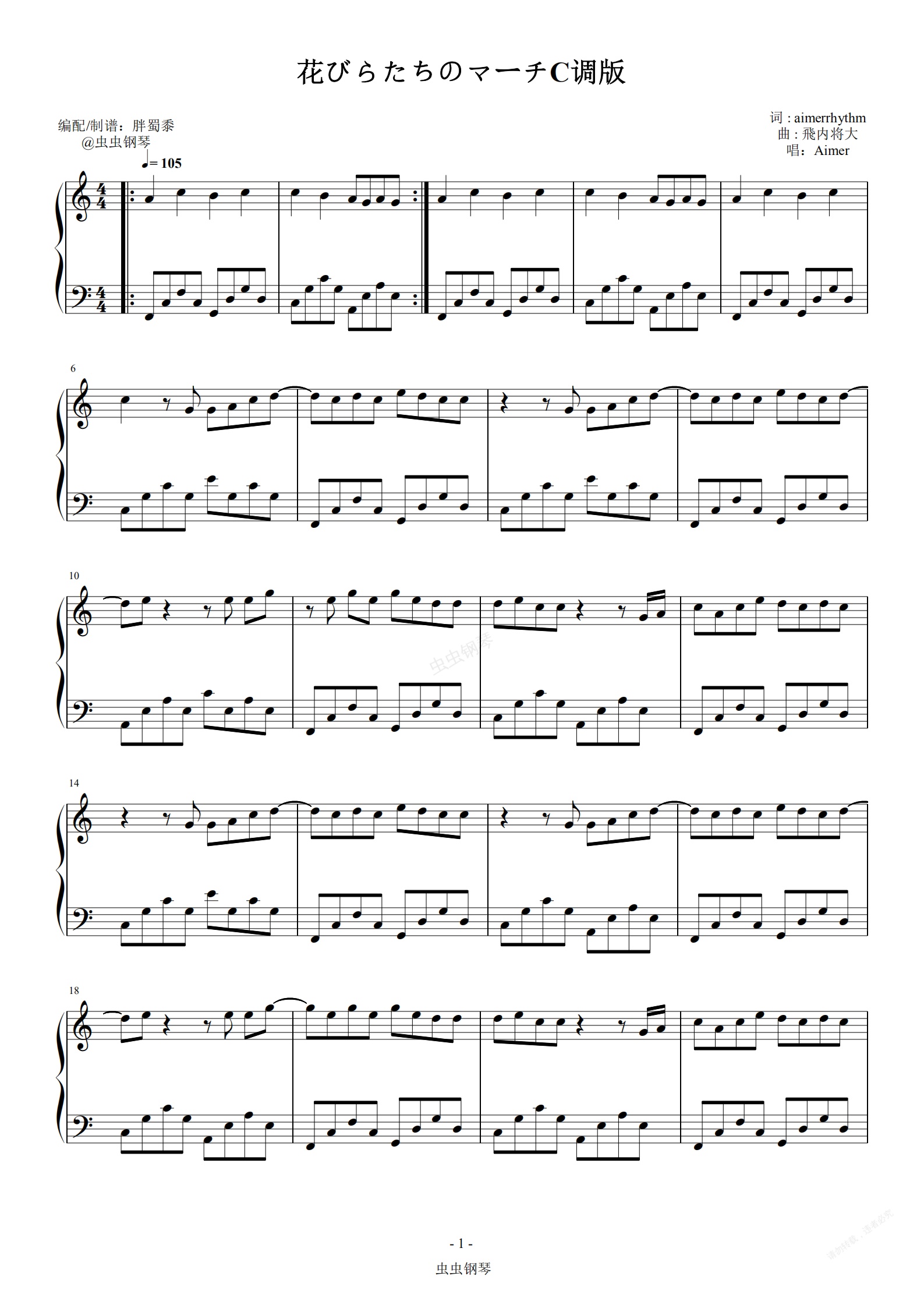 钢琴谱:Aimer-花びらたちのマーチC调易弹版