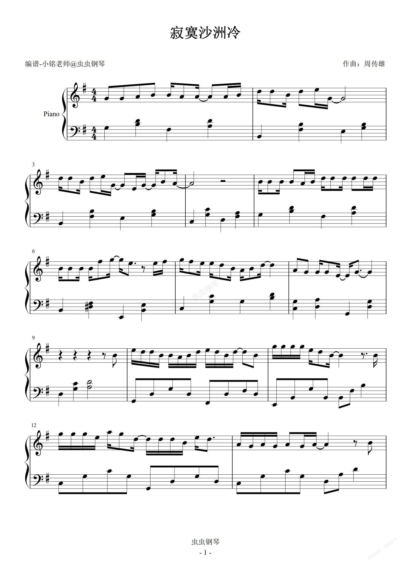钢琴谱:寂寞沙洲冷 【怀旧 简易】