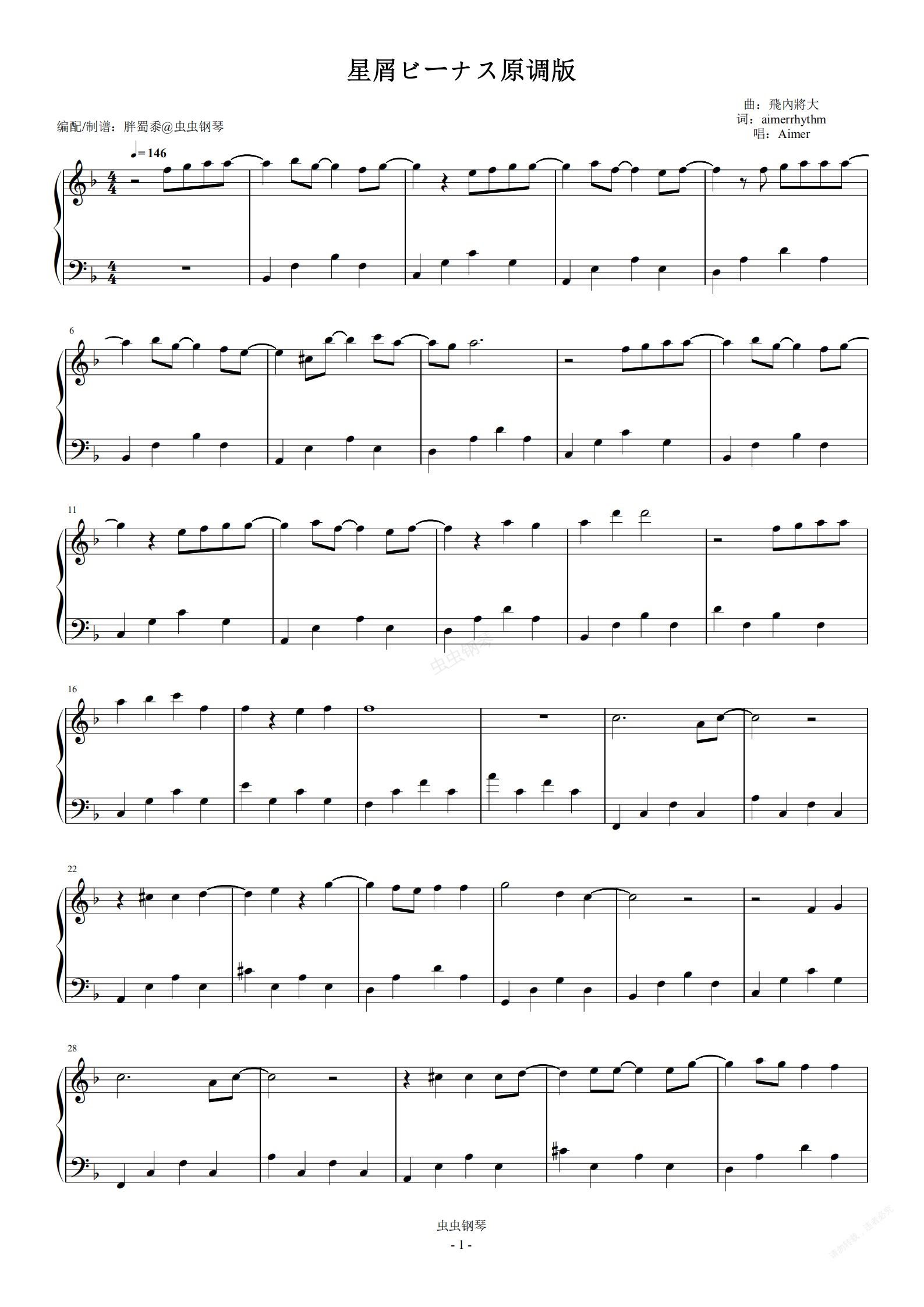 钢琴谱:Aimer-星屑ビーナス星屑维纳斯原调