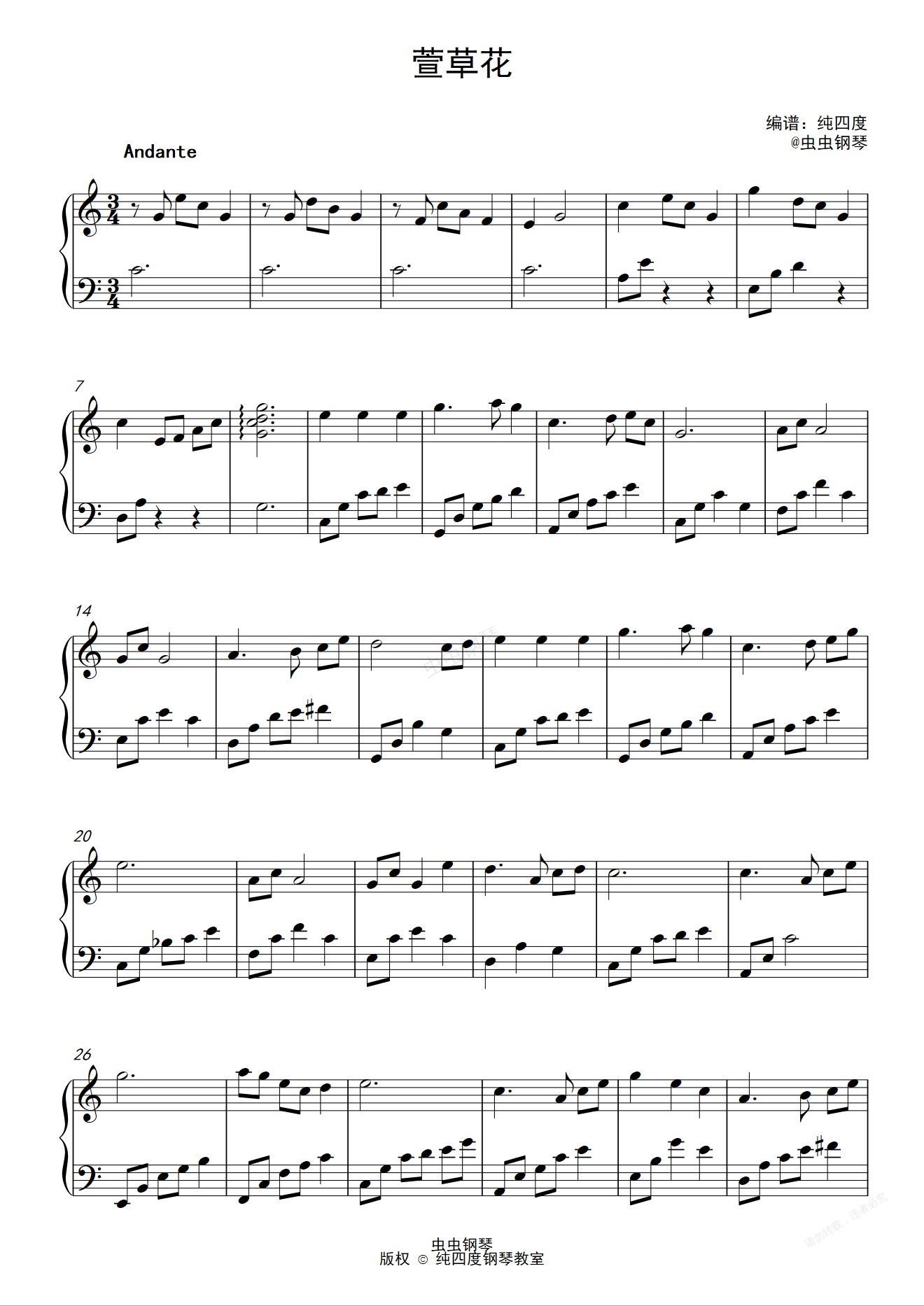 钢琴谱:萱草花(完美C调版)