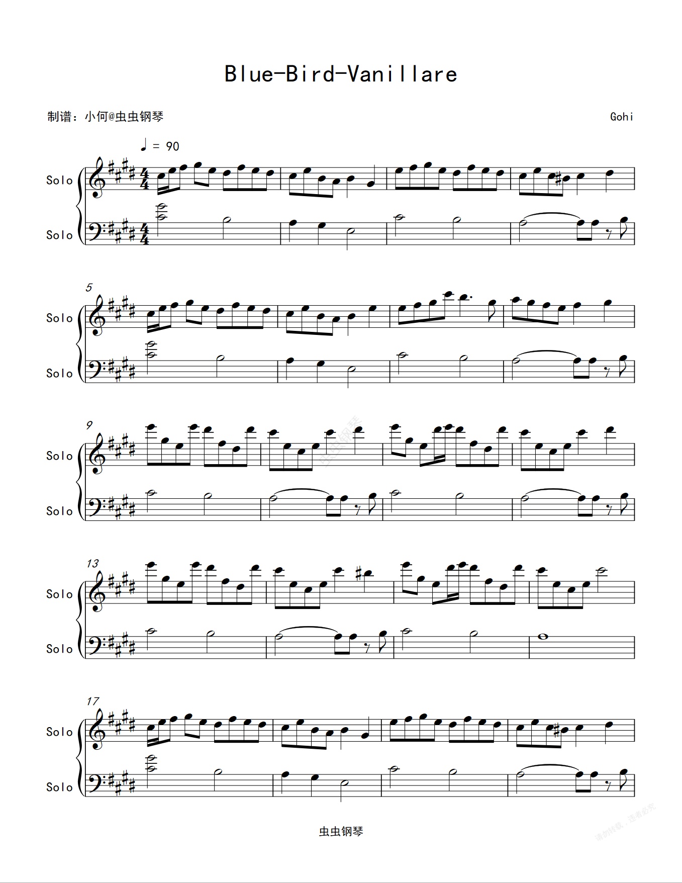 钢琴谱:Blue-Bird-Vanillare-原版曲谱