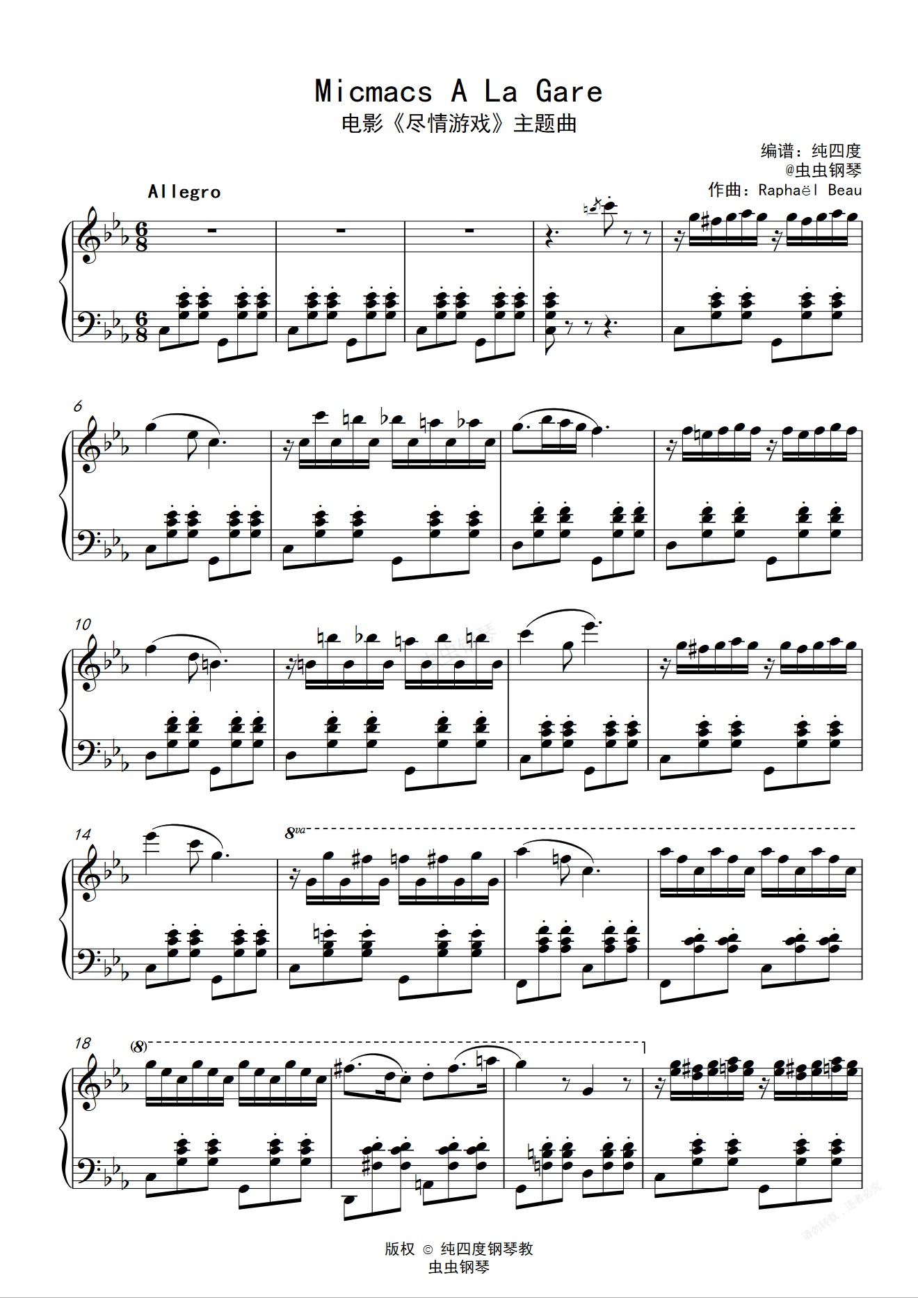 钢琴谱:Micmacs A La Gare(电影《尽情游戏》主题曲)