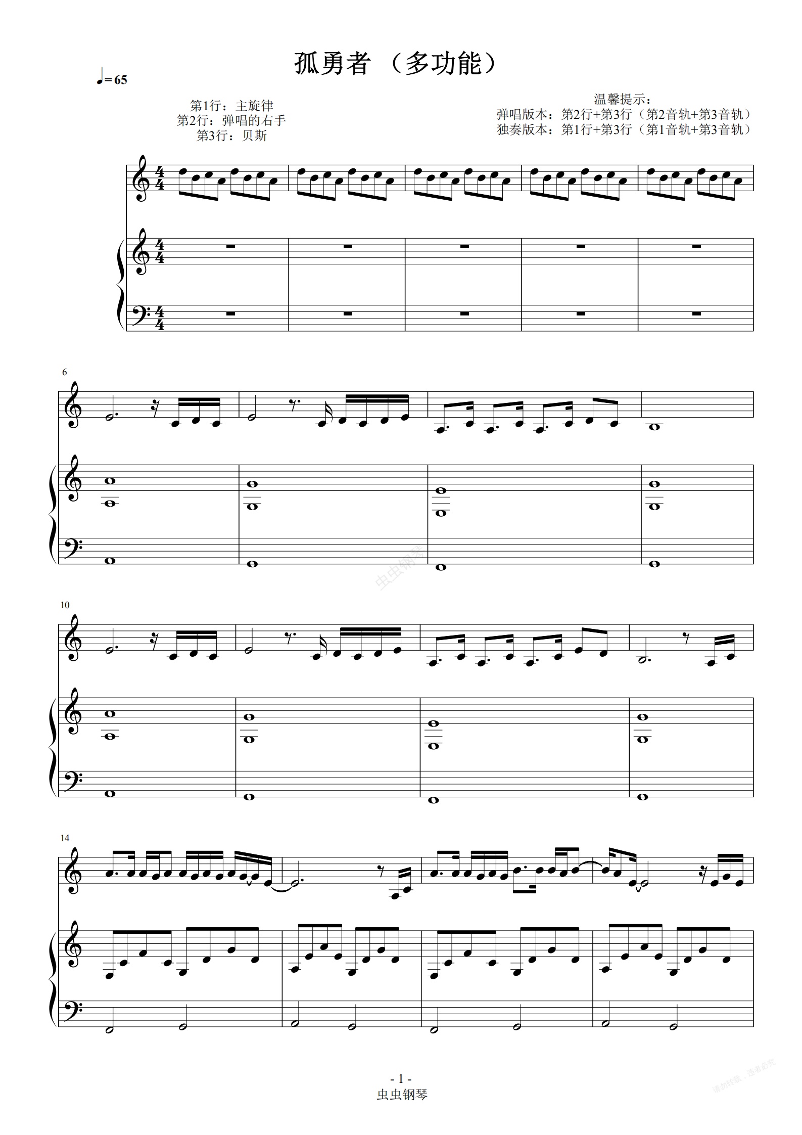 钢琴谱:孤勇者 C调 弹唱+独奏 简易(小汤3)
